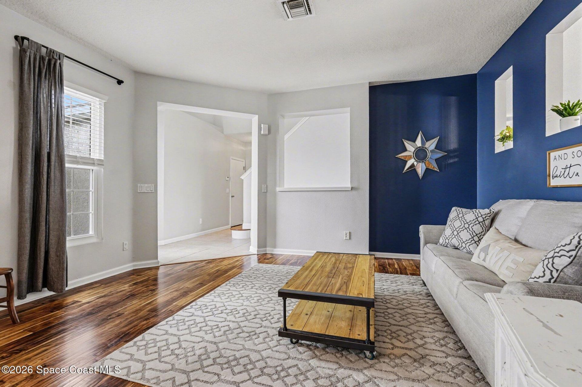 PLENTY of room to spread out in this absolutely gorgeous 5 bedroom, 2 and ½ bathroom, lakefront pool home! A spacious island kitchen with raised panel maple cabinets and crown molding accents, solid surface countertops and breakfast nook. Rich Acacia flooring throughout most of the home with large neutral colored ceramic tile in the rest. Separate living, dining, family rooms & loft area! Raised ceilings on both floors creates a roomy atmosphere. An expansive lanai for relaxing or entertaining while overlooking the sun kissed, screened in pool with a serene lake view backdrop. Large upstairs primary suite with separate shower, soaker tub & double vanitiy. Genarac portable generator included for additional peace of mind! New AC in 2024, exterior paint & impact windows on the front & east side in 2023, range oven in 2022, new roof, refrigerator & water heater in 2019, Pool installed in 2016. Minutes from shopping, restaurants, great parks, Cocoa Village and Cocoa Riverfront Park.
