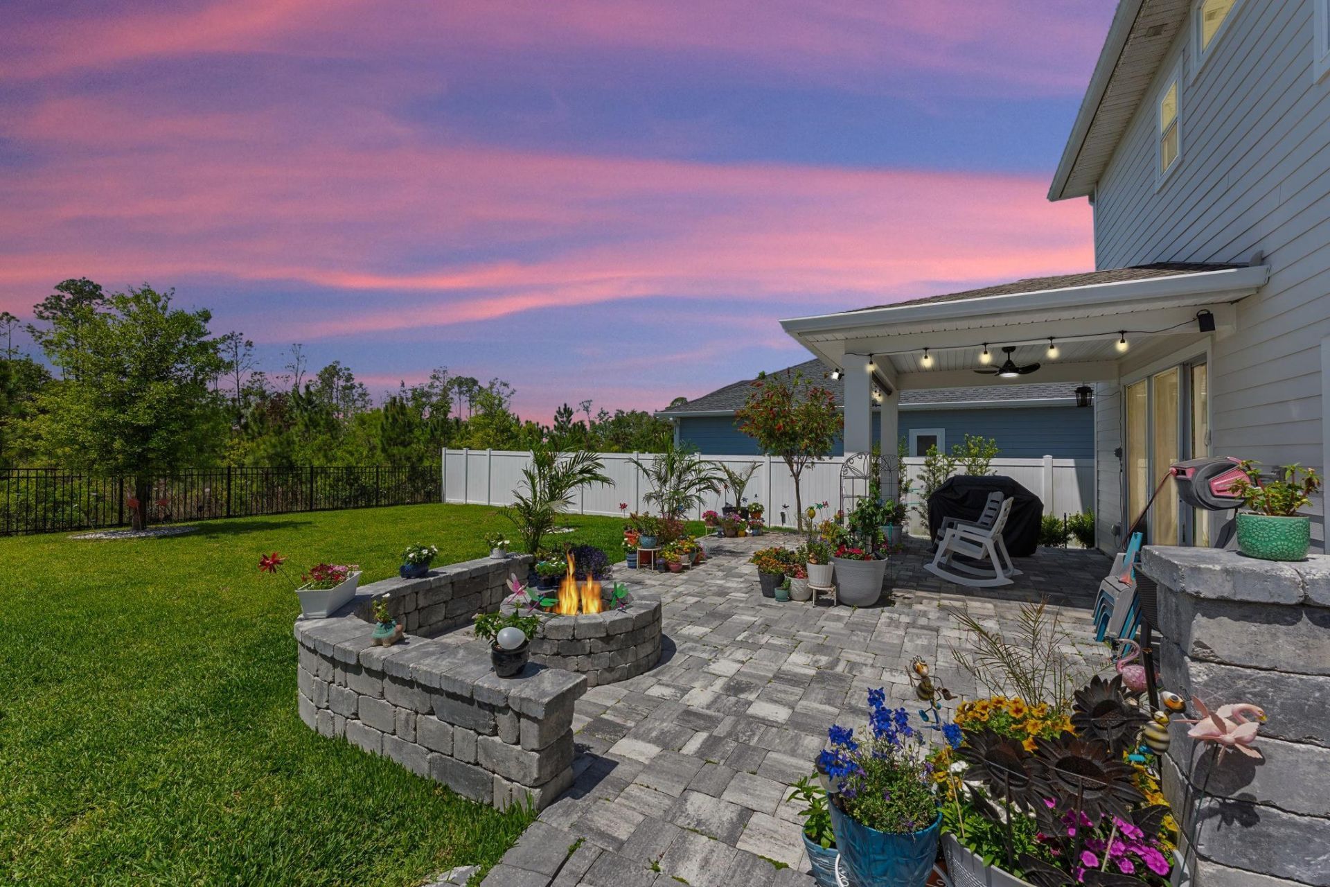 Make sure to check out the Virtual Tour for a 3D Model w/ Walkthrough, Floor Plan w/ Measurements, Video, & more! Fresh, bright, and built for the way people actually live: 121 Nighthawk Lane. This 2023 home in Grand Landings delivers space where you want it and flexibility where you need it. With 3 bedrooms, 2.5 baths, plus a dedicated office, and a loft that refuses to be boxed into just one purpose, this layout quietly checks all the boxes while keeping things comfortable, open, and easy. Step inside and the main living area immediately sets the tone. Natural light pours across the open concept space, connecting the living room, dining area, and kitchen into one seamless hub for everything from slow Sunday mornings to full house gatherings. The kitchen is equal parts style and function, featuring quartz countertops, stainless steel appliances, and a large island that naturally becomes the place everyone ends up, whether they planned to or not. Tucked toward the front of the home, the downstairs office offers a quiet, focused space that can just as easily flex into a guest room, hobby space, or whatever life calls for next. Upstairs, the layout opens up again with a spacious loft that works as a second living area, media room, or the perfect â??everyone spread out for a minuteâ?? zone. The primary suite feels like a true retreat, with generous proportions, great natural light, and a clean, modern bathroom design that makes mornings a little less rushed. The additional bedrooms are well sized and positioned for privacy, while the upstairs laundry room keeps things practical and convenient right where you need it. Out back, the setting steals a bit of the spotlight. With no rear neighbors and peaceful wooded views, the backyard feels private and calm, like your own little buffer from the world. The covered paver patio is ready for enjoying your morning coffee or shaded afternoons while reading your latest book. The extended paver area gives you room, grill, gather around the custom fire pit with friends, or start planning that future pool without feeling cramped. It is the kind of outdoor space that grows with you, whether you keep it simple or go all in. The location ties it all together. Grand Landings offers gated entry and resort style amenities including a community pool, fitness center, playground, and dog park. You are about 10 minutes to I-95 for easy commuting, roughly 15 minutes to Flagler Beach when salt air and and waterfront dining are calling your name, and close to everyday conveniences along SR-100 with shopping, dining, and essentials just a quick drive away. Homes like this tend to make a strong first impressionâ?¦ and then a lasting one when you realize how easy it would be to actually live here. If itâ??s already starting to feel like a fit, thatâ??s usually a sign worth paying attention to. Dont let this one slip away... Set up your showing today before 121 Nighthawk Ln is the "one that got away".