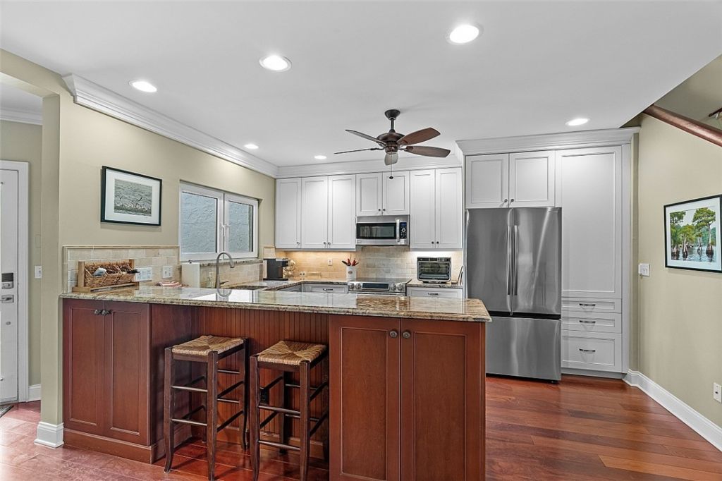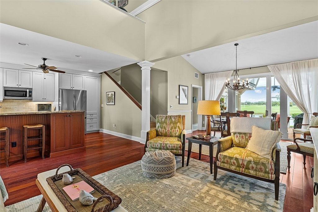 Luxe lock + leave meets lakefront club living! Artfully renovated 2B + loft townhome w/garage in premiere locale: WIDE lake + golf views in St Davids at Grand Harbor w/pool across st, club memberships avail + ideal locale 5 mins off barrier island! Elegant fit/finish incl hardwood floors, renovated baths/kitchen where soaring ceilings merge indoor/outdoor living. Smart plan w/1st fl Primary + 2nd floor flex loft + guest suite - all w/views! Renovation done incl windows + newer roof + dues that incl yard work = the quintessential Vero resort retreat. Turnkey avail to use it now! An absolute gem