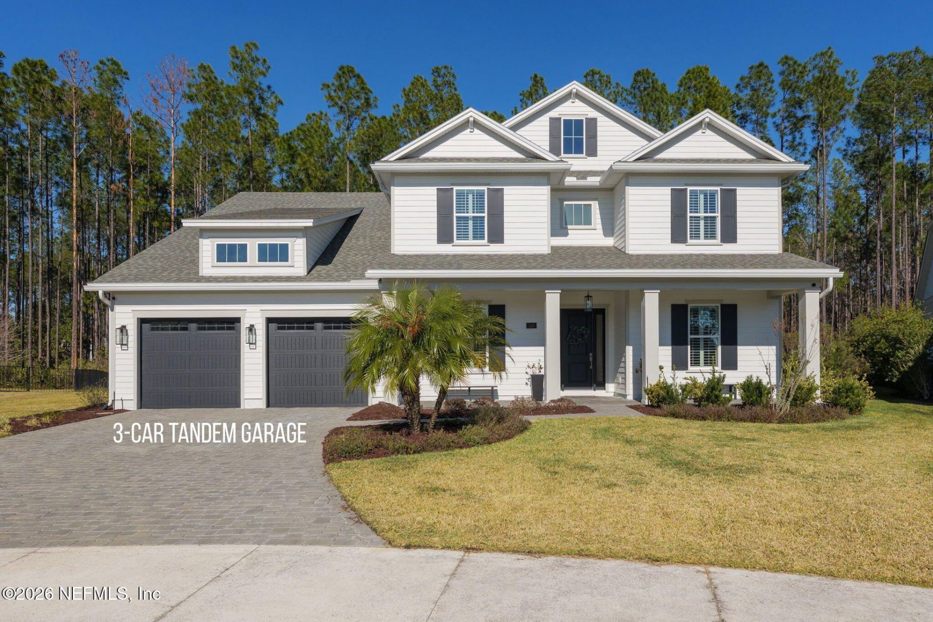 Homes like this don't come along often. Built in 2022 by boutique builder Tidewater Homes and tucked away on a rare .34-acre preserve cul-de-sac lot in Highpointe at RiverTown, this beautifully customized residence offers exceptional privacy, space, and thoughtful design in one of the area's most desirable communities, Rivertown. With over 4,274 square feet, 5 bedrooms, 4 baths, and a 3-car tandem garage, the layout is ideal for modern family living and entertaining. Inside, 10-foot ceilings on the lower level, smooth-finish walls, crown molding, oversized baseboards and upgraded luxury vinyl plank flooring create a bright, polished feel throughout the main living spaces. The customized kitchen features professional Thermador appliances, a 36'' gas cooktop, quartz countertops, double-stacked cabinetry with lighted glass uppers and lowers and an oversized island perfect for gathering. A butler's pantry with beverage/wine fridge plus a spacious customized walk-in pantry add outstanding storage and functionality. The large family room is warm and impressive with a tray ceiling, gas fireplace framed in tumbled quartz stacked stone. A custom dedicated private office behind French doors provides an ideal work-from-home setup, while the main-level primary suite feels like a retreat with dual sinks and a spa-inspired bath featuring an oversized frameless rain shower. A downstairs guest bedroom and full bath add flexibility for guests. Upstairs is thoughtfully designed as a true kids' oasis, featuring two separate living zones; an open loft perfect for play, homework, or lounging, and a private, closed-door theater room with ceiling mounted projector ready for movie nights and watching your favorite sports. Outdoor living shines on the screened lanai with summer kitchen, built-in grill, sink, Sonos speakers, and TV hookup overlooking a peaceful preserve. The large backyard is pool-ready with gas and conduit already in place. This home also delivers where it matters most; efficiency and comfort. A radiant heat barrier installed during construction helps keep the home cooler in summer, warmer in winter, and utility costs lower year-round. RiverTown residents enjoy access to three resort-style amenity centers featuring pools, waterslides, lazy river, caf?, nature trails, dog parks, and a kayak launch on the St. Johns River, all within top-rated St. Johns County schools. This is a rare opportunity to own a truly customized home on one of the best lots in RiverTown.