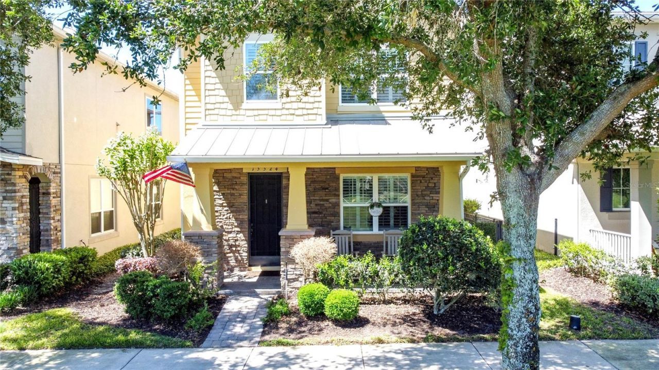 Welcome home to this updated 3 bedroom, 3.5 bath urban cottage in The Cove at Hamlin with large covered front porch that overlooks a greenbelt. The home offers a bright and sunny 2-story foyer, an inviting kitchen with breakfast area, a large great room with recessed lighting, crown molding and a wall of sliders that open to the covered, screened lanai which allows for that indoor-outdoor Florida living. The kitchen offers 42 cabinets, granite countertops, stainless steel appliances, including a gas range, a large walk-in pantry and center island with space for stools. You will also find a guest bedroom suite with walk-in closet and full bath on the main level in addition to the half bath off the kitchen area.The owner's suite is found on the second level and is highlighted by French doors, tray ceiling and large windows. The en-suite bathroom has duel sinks, large counter space, frameless glass shower and a walk-in closet with custom closet organizer. You will also find on the second level a quiet nook with a window (perfect for a desk), the third bedroom and bath and the laundry room with cabinets.Some of the additional upgrades in the home are 8' doors, Plantation blinds, wrought iron bannister, crown molding and a tankless water heater.The exterior features a screened paved lanai, fenced yard, and new turf that was just added to the side yard. The home has a rear two car garage with ample ceiling storage racks.This sought after community is walkable to the Hamlin Town Center that features stores, restaurants, medical services and is highlighted by Popstroke miniature golf and the Cinepolis movie theater.The community offers a resort style pool with splash pad, clubhouse, fitness center, playgrounds and dog park and is located with easy access to SR429 and the Florida Turnpike. A bonus is the accessibility to Disney and nightly views of the fireworks throughout the community.Come make this your NEW home!