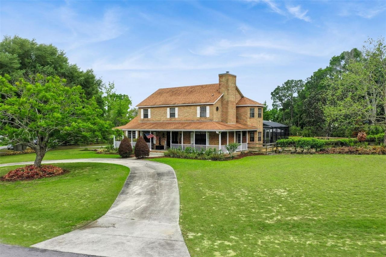 Welcome to your new dream home! Set on nearly a full acre, this stunning 4 bedroom, 3 bathroom home offers the perfect blend of privacy, functionality, and elevated design. Positioned on a spacious corner lot, the expansive U-shaped driveway and beautifully landscaped front yard create a grand and welcoming first impression. Inside, the home opens to thoughtfully designed living spaces, including a formal living room ideal for hosting and a cozy family room anchored by a charming brick fireplace, perfect for relaxed evenings at home. The family room flows seamlessly into the kitchen, where crown-molded cabinetry, generous counter space, and a stainless steel range with a statement range hood over the island create a space that's both stylish and highly functional. A bright dinette area set within a bay window overlooks the backyard, offering the perfect spot to enjoy meals with a view. At the heart of the home, the dining room features eye-catching barn doors and connects effortlessly to the kitchen, making entertaining feel natural and easy. A full bathroom downstairs adds convenience for guests. Upstairs, all bedrooms are privately tucked away for optimal privacy. The primary suite is a true retreat, complete with a bay window, barn door accents, a spacious closet, and a beautifully appointed en suite bath featuring dual sinks, a large walk-in shower, and a rain shower head for a spa-like experience. Additional bedrooms are generously sized with plenty of natural light and storage, ensuring comfort for everyone. Step outside and discover your own private oasis! The screened-in lanai opens to a resort-style pool complete with a sun shelf, making it perfect for soaking up the Florida sunshine. A covered patio provides the ideal setting for al fresco dining, weekend barbecues, or simply unwinding poolside. The expansive backyard offers endless space for four legged friend, play, or future possibilities. Located just minutes from the renowned golf courses of Bella Collina and the charm of downtown Montverde, this home also places you near Lake Apopka, Lake Minneola, and an abundance of nature trails and parks so you can enjoy natural beauty close to home. This home lets you enjoy the peace of country living with the convenience of having everything close by. This is the lifestyle you've been waiting for! Don't miss out on this unique opportunity, schedule your private showing TODAY!!!