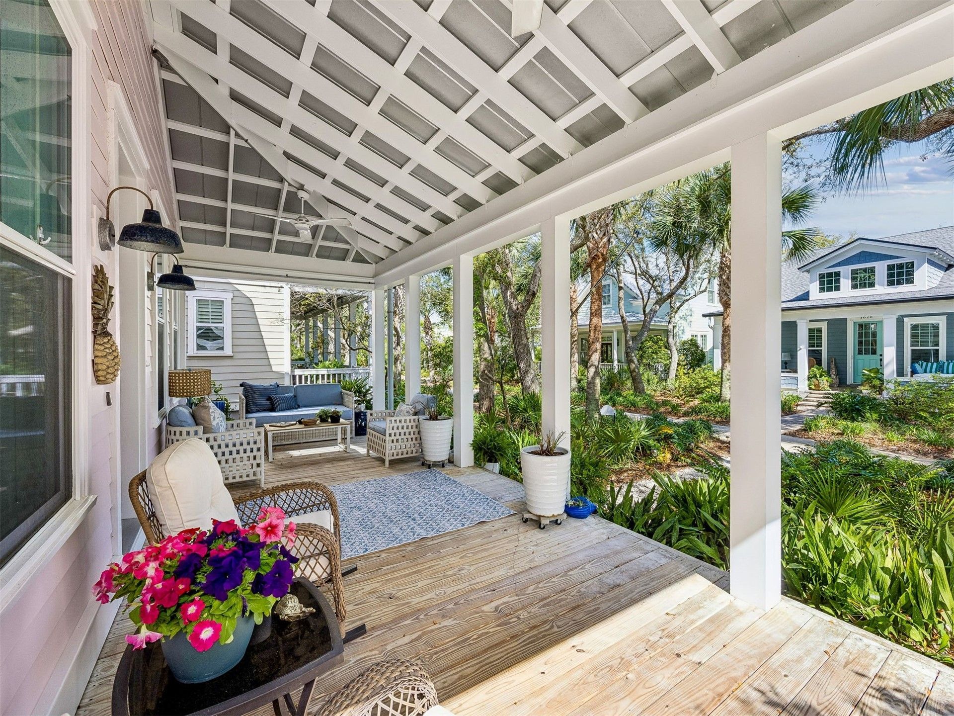 CHARMING, ADORABLE and full of CHARACTER are just a few descriptive adjectives that describe this AMELIA PARK CHARMER! Enjoy the front porch and its abutting green space and alternately the back covered deck and small garden space perfect for those who like to garden, but not labor. Come view this Amelia Island cottage with 4 spacious bedrooms, one currently being used as a den. This home lives larger than its 2086 Sq Ft and offers lot of flexibility. Along with its 4 bedrooms it has two full baths and two partial baths. Home is filled with warm ambient light. Words do not do this home justice.....one must actually see for oneself the many attributes this home offers. Here are some of those attributes: plantation half shutters and tasteful blinds throughout, low maintenance polished concrete floors in main living areas, lovely kitchen with marble counter tops and 42 Shaker cabinets and stainless steel appliances, adjoining butler's pantry offering plenty of storage space for all your kitchen gadgets and flexible entertaining options. There are plenty of storage options in this home! Hardwood treads on stairway and upstairs bedrooms are all tastefully carpeted. At the top of the stairway is a loft space perfect for guests to unwind and read a book or even perhaps do a little work. All upstairs bedrooms feature spacious closets. Large two car garage with pull down stairs for additional attic storage. Metal roof and xeriscape landscaping means no lawn mowing necessary!