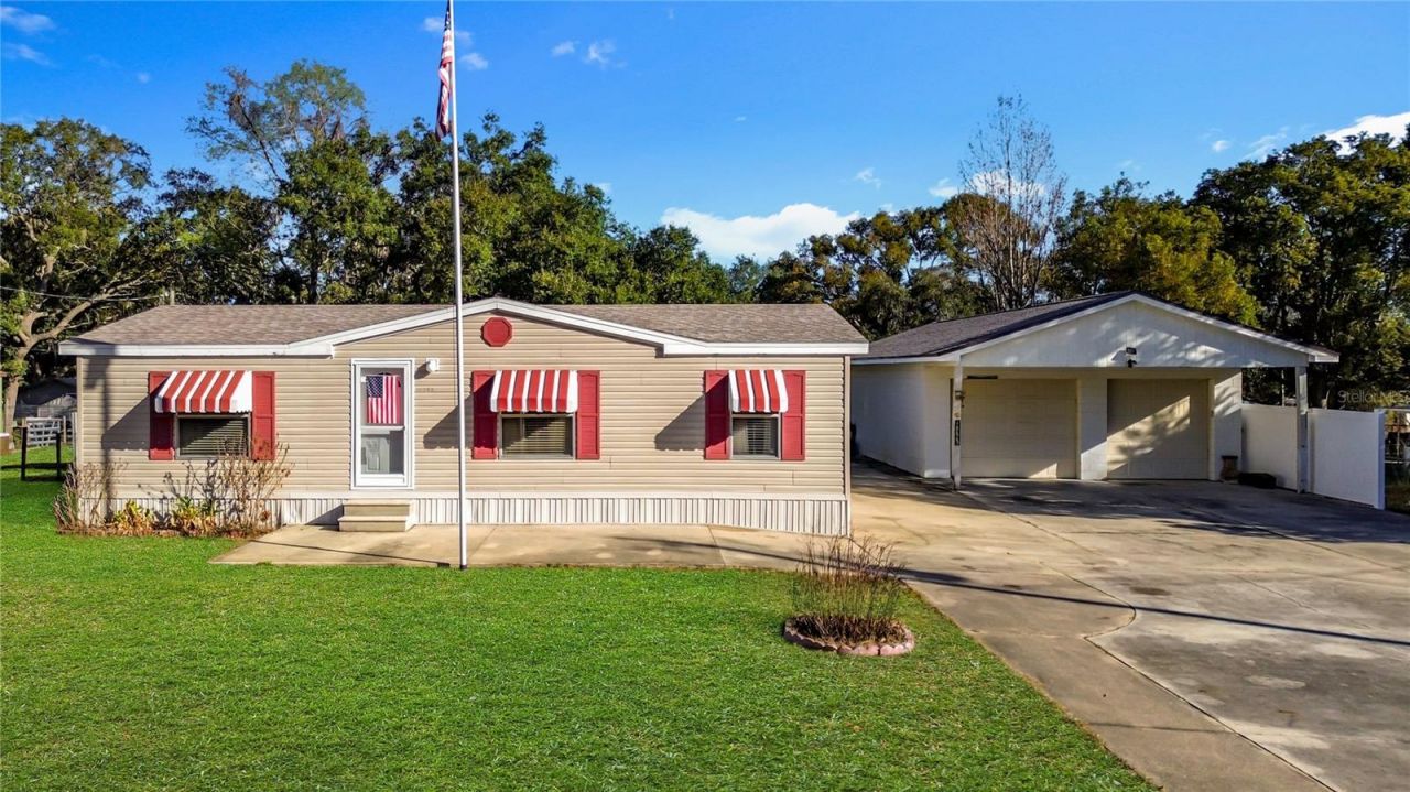Exceptionally maintained and thoughtfully improved, this double-wide manufactured home delivers a rare combination of functionality, space, and pride of ownership. The property features a true 4-car tandem garage-appearing as a standard 2-car from the front but offering extended depth ideal for vehicles, storage, or workshop use. The home's roof was replaced in 2022, and the detached garage received a new roof in 2025, adding valuable peace of mind for future owners. Inside, the home presents clean, well-kept living spaces with a comfortable layout, a dedicated laundry room, and a fully enclosed screened-in patio that expands your usable living area year-round. The oversized driveway provides outstanding parking capacity, and the lot itself offers unique potential for future use or customization. If you're seeking a move-in-ready home with strong utility, quiet surroundings, and room to grow, this property stands out in the Silver Springs market.