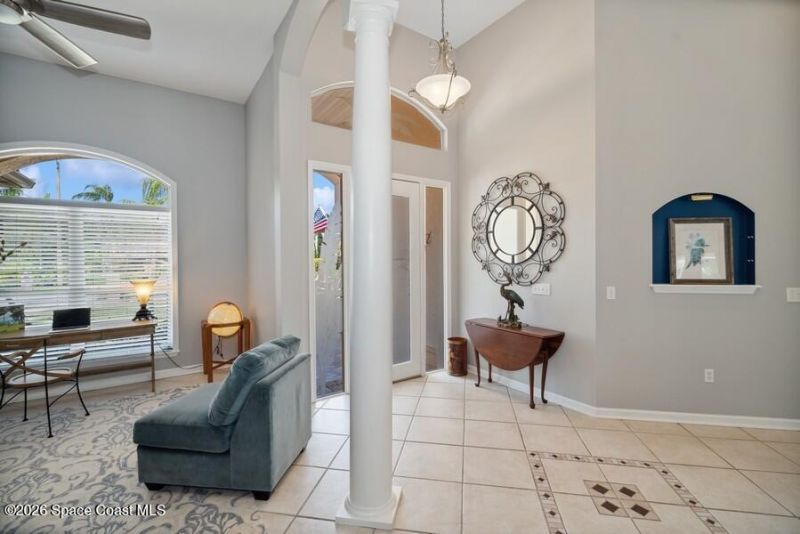 Are you ready to wake up to private water views and end your days by the pool? This spacious 4BR/2.5BA split-plan home delivers the ultimate Florida waterfront lifestyle with scenic views of the water and preserve from nearly every room. The open-concept kitchen is a chefs paradise, featuring stainless steel appliances, gas cooktop, rich wood cabinetry, granite countertops, and a breakfast bar?perfect for hosting after a day on the water. French doors lead to your screened pool oasis, where you can grill the days catch, unwind in the solar-heated pool, and enjoy the coastal breeze.Bring your boat for quick access to Sykes Creek, the Barge Canal, Indian River, Banana River, and Port Canaveral locks for offshore fishing and sunset cruises.Located in the sought-after Sykes Cove waterfront community, residents enjoy a lakeside gazebo, fishing, playground, and neighborhood events that create a true coastal village feel.This isnt just a home?its a waterfront vacation.