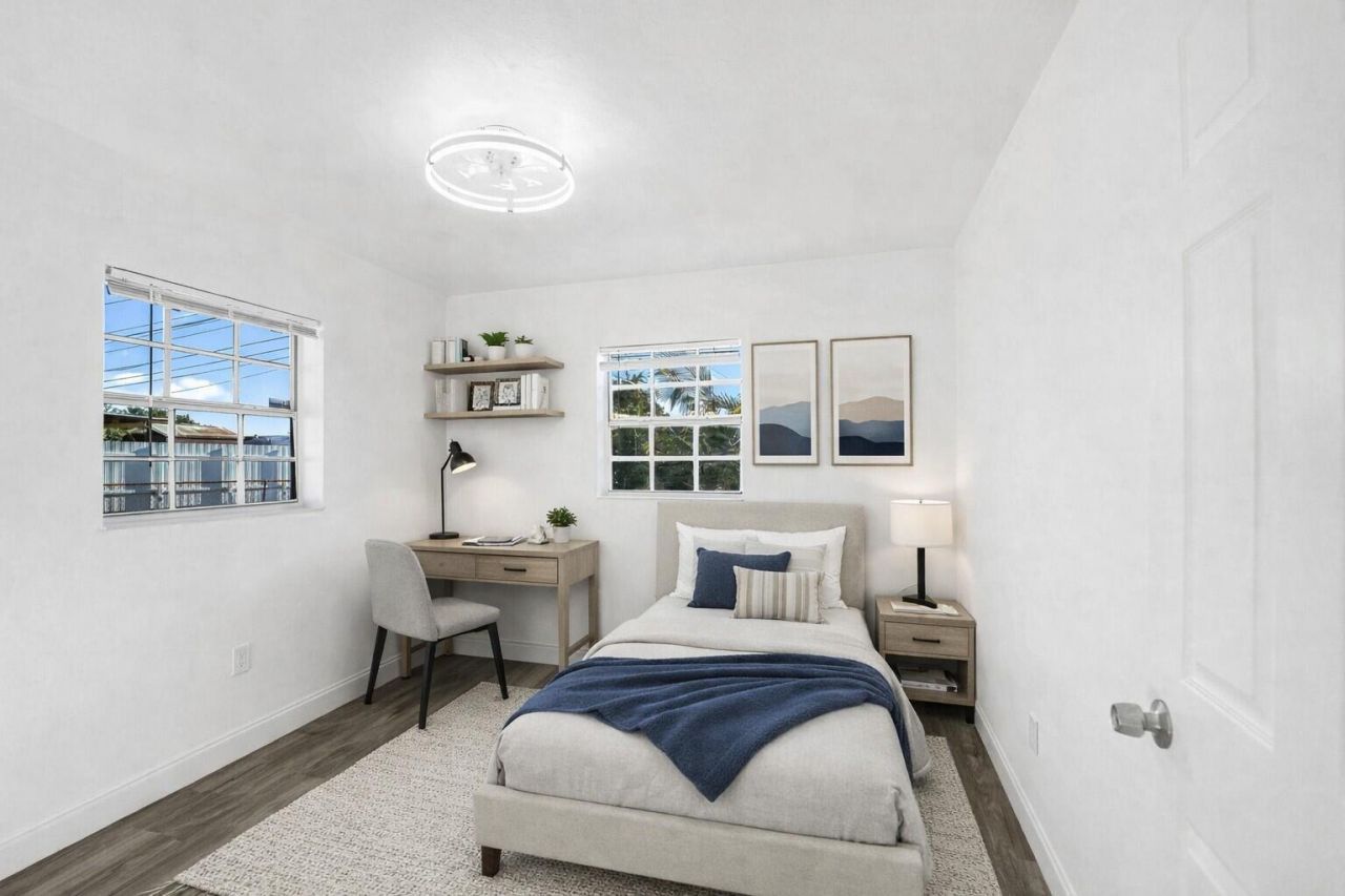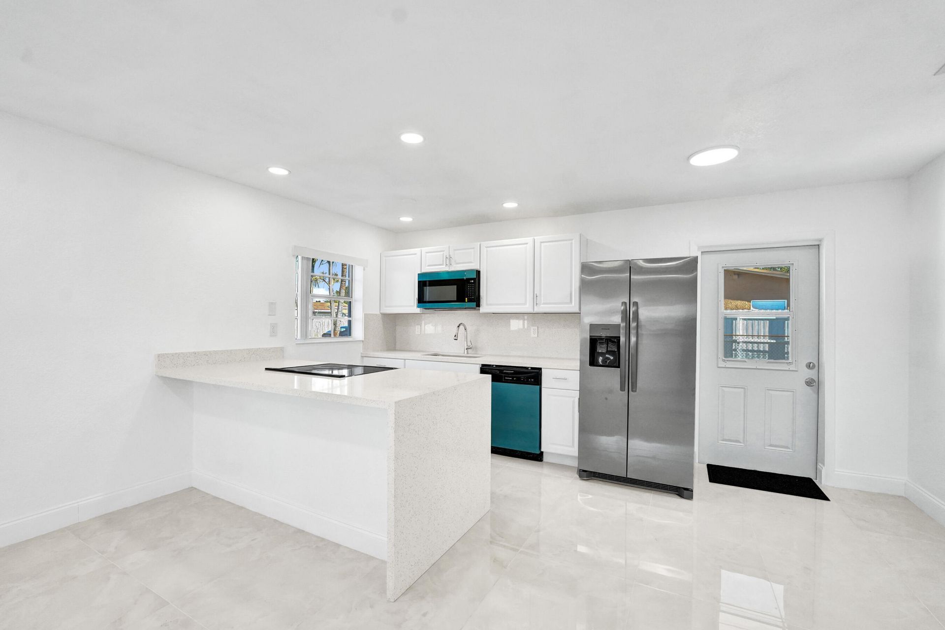Fully renovated 3-bed, 1-bath home in Miami Gardens ready to impress! Enjoy a brand-new kitchen with quartz waterfall island, new cabinets, and new appliances. The updated bath features a sleek vanity and modern surround. New porcelain tile and luxury vinyl flooring flow throughout. A dedicated laundry/storage room adds function, plus a newer roof, new A/C, new hot water heater, and new electrical panel for peace of mind. Step outside to a large fenced yard with space for a pool, outdoor kitchen, RV, or boat. No HOA or restrictions! Minutes to Hard Rock Stadium, Hard Rock Casino, Miami Airport, shopping, dining, and major highways-live connected and carefree! Pool/Pergola for concept only.