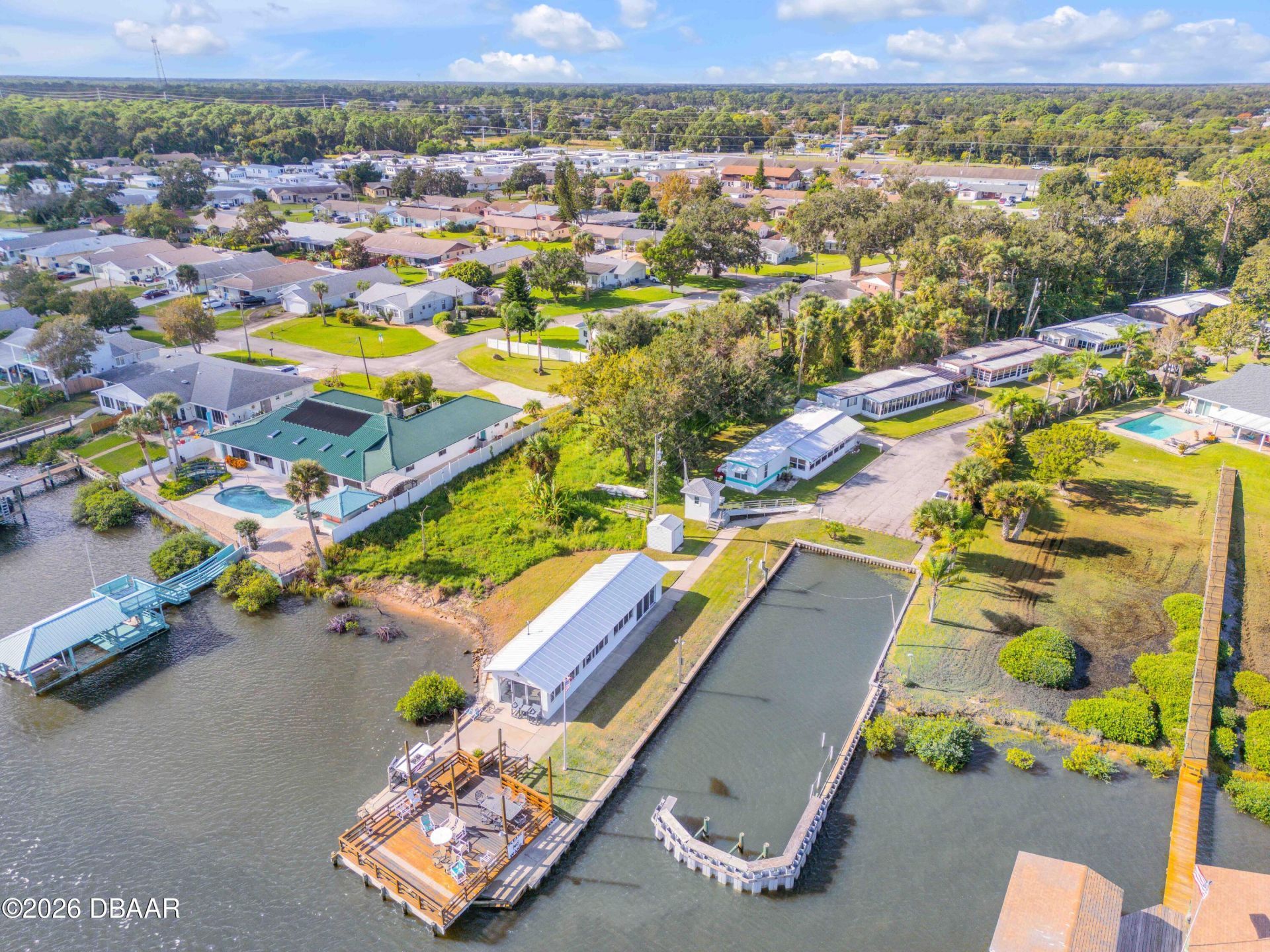 Discover coastal comfort in this well-maintained 2-bedroom, 2-bath home located in a desirable 55+ waterfront community where you own the land. The home features luxury vinyl plank flooring in the kitchen, bathrooms, and laundry room, along with soaring cathedral ceilings that enhance the open feel. Major updates include a shingle roof (2021) and A/C system (2022). The kitchen is equipped with updated stainless steel appliances, including an over-the-range microwave, sleek French-door refrigerator, a double sink with pull-down faucet, reverse osmosis water filtration system, and newly installed pantry cabinets for added storage. Both bathrooms feature updated faucets, and the primary bathroom boasts an updated shower stall complete with a built-in shower seat and light for added comfort and convenience. LED lighting is installed throughout the home, creating a bright and energy-efficient environment. Custom plantation blinds add style and privacy throughout. The home also features a storm door with a convenient pull-down screen, allowing for added airflow and natural light. Step outside to a backyard equipped with a smart floodlight camera compatible with Alexa and Google, along with an 8x10 storage shed with electricity--perfect for tools, hobbies, or extra storage. Conveniently located just minutes from New Smyrna Beach, the Friendly Shores community offers direct water access for fishing and boating, a community center with outdoor seating, a large fishing dock, kayak launch, and low $200 per month HOA fees that cover water, sewer, trash, and common area maintenance. Schedule your private showing today!