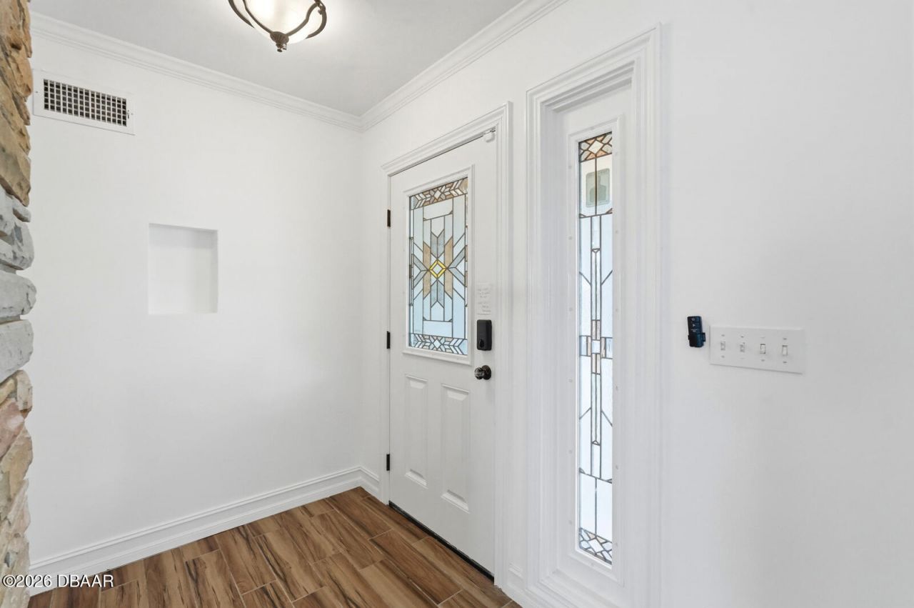 Welcome to your beachside retreat at 2203 S Peninsula Dr in Daytona Beach, perfectly situated just 2 blocks from the ocean and only ½ mile from grocery stores, dining, and everyday conveniences. This golf cart-friendly location allows you to easily get anywhere you need while enjoying the ultimate coastal lifestyle.This beautifully updated home offers the ideal blend of comfort, character, and functionality. Step inside to find a spacious, open-concept layout featuring wood-look tile flooring throughout, a stunning coquina stone wood-burning fireplace, and abundant natural light pouring through plantation shutters. The coffered ceiling detail adds an elegant touch to the main living space, creating a warm yet refined atmosphere.The kitchen is both stylish and functional with rich wood cabinetry, granite countertops, stainless steel appliances, and modern track lighting, making it perfect for everyday living or entertaining. Outside, the property features a unique roundabout driveway with ample parking, along with a large yard shaded by mature trees and a private backyard space ready for relaxation or customization. The oversized lot provides plenty of room to create your dream outdoor oasis.Located in a highly desirable beachside neighborhood, you'll love the convenience of being just moments from the sand while still close to everything you need.Don't miss this opportunity to own a move-in ready home in one of Daytona Beach's most sought-after coastal locations!