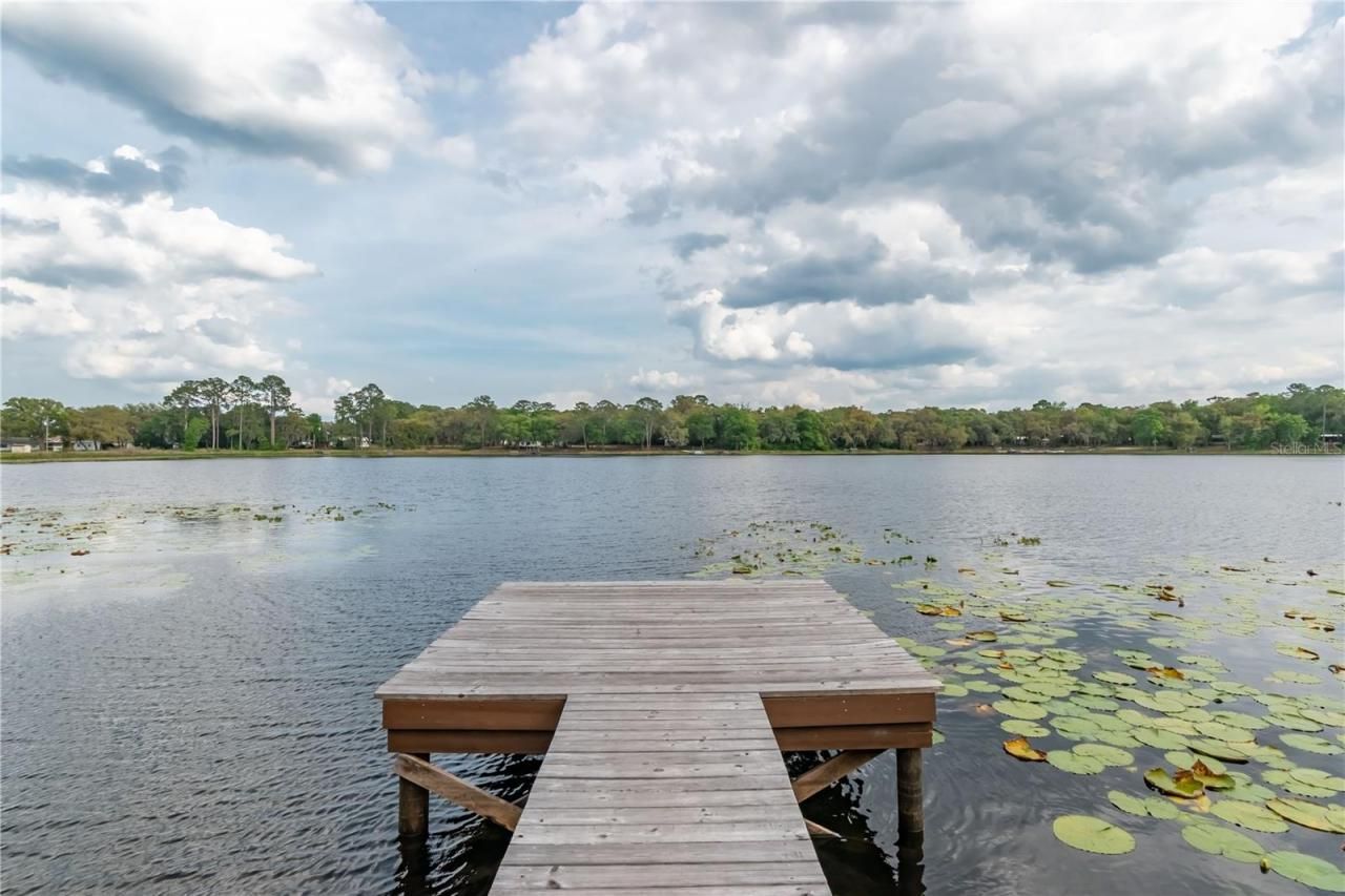 Breezy waterfront living along Miles Kale Lake! Overlooking the sparkling spring-fed Miles Kale Lake in the quiet area of Fort McCoy, this property offers a total of two parcels that feature pristine shoreline and a combined 1.12 acres. All of the acreage is fenced, with the two parcels being a gently shaded lot with the main residence and a secondary lot which has been left in a more natural state as a heavily wooded area. Move-in ready and fully furnished, this cozy lodge like Cottage rests on the eastern lot and offers plenty of sleeping space in the 1-bedroom or the spacious family room with beds for 4. This charming cottage features a large family room, a delightful kitchen with adjacent dining area, and a great screen-enclosed porch. All rooms have a restful view of the lake. This home offers a rustic aesthetic with lots of tasteful wood-work done throughout the home. A laundry shed is also attached to the home for added ease. A private boat ramp with a recently updated dock allows for easy enjoyment of the lake, opening up a variety of uses for those who enjoy spending time on their boat. Miles Kale Lake is a wonderful, natural Florida lake with a nice sand bottom and a few unique features that make it extra exciting- the lake has a gradual slope and is deeper than many other lakes in the area. The lake is great for boating on canoes, kayaks, jet skis, as well as power boats with other boats rarely being seen on the lake to provide little to no disruption on most days. Many other lakes are also in the area, making this an ideal property for those looking to discover the many activities Central Florida has to offer! If you're ready to take in pristine water-front views or are looking for an income producing opportunity, this property is a wonderful option to consider!