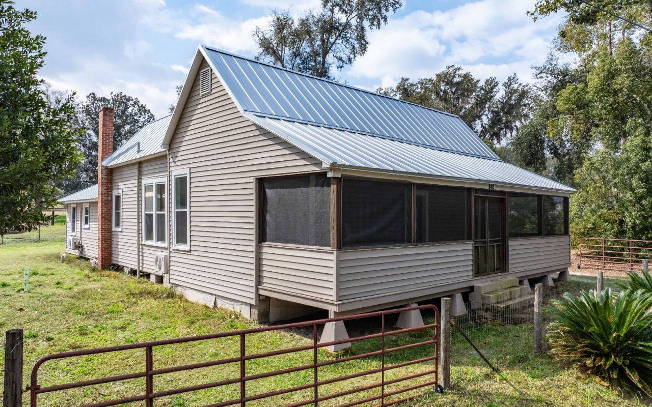 This beautifully restored early-1900s home in the heart of Pinetta, Florida blends timeless character with thoughtful modern updates while preserving many original features. Renovations include updated wiring and plumbing, vinyl siding, insulated windows, and a brand new metal roof. The kitchen offers a gas stove and existing appliances, and a tankless water heater provides continuous hot water. Inside, you’ll find high ceilings, some original wood walls, and two and a half updated bathrooms, including a walk-in shower and a Jacuzzi tub in the second bath. A large screened front porch overlooks the fenced yard, which offers plenty of space for gardening, outdoor activities, or simply enjoying the outdoors. Don’t miss your opportunity to see this inviting home!