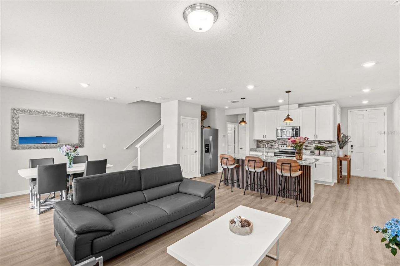 Seller may consider buyer concessions if made in an offer ~ Welcome to LOW MAINTENANCE LIVING done right in the Greens at Forest Lake in Ocoee - this 2021 BUILT townhome is absolutely immaculately kept and truly shows better than a model! MOVE IN READY with peaceful POND VIEWS and a desirable interior unit location, this home also offers an ASSUMABLE FHA LOAN - an incredible opportunity in today's market. Recent updates shine, starting with 2025 UPGRADES including WHITE OAK LUXURY VINYL PLANK flooring throughout (no carpet!), INTERIOR PAINT touch-ups, decorative paneling under the kitchen island, a WATER SOFTENER/FILTRATION SYSTEM, and ceiling fans throughout (including the garage!). In 2024, the home was enhanced with updated kitchen and bathroom hardware along with stylish pendant lighting, and in 2023, a modern kitchen backsplash was added - creating a fresh, cohesive look that feels current and elevated. Step inside to a light, bright OPEN CONCEPT layout designed for both everyday living and easy entertaining. The kitchen is the heart of the home, featuring a large ISLAND with bar seating, granite countertops, STAINLESS STEEL APPLIANCES, pendant lighting, and a clean, modern color palette - all flowing seamlessly into the living and dining spaces. Sliding glass doors lead to the patio where you can unwind and take in tranquil WATER VIEWS. The main floor also includes a convenient half bath, while upstairs offers a smart SPLIT BEDROOM layout for added privacy. The PRIMARY SUITE features a WALK-IN CLOSET and a private en-suite bath, while bedrooms two and three are positioned on the opposite side and share a second full bath. A second-floor laundry room adds everyday convenience. Outside, you will appreciate the paver driveway, attractive landscaping, and nearby guest parking. Residents of Greens at Forest Lake have access to community amenities including a POOL, playground, and walking trails, all just minutes from Publix, shopping, dining, and with easy access to SR-429 and Clarcona Ocoee Road for commuting anywhere in Central Florida. If you have been waiting for a townhome that truly stands out in condition, style, and location - this is it. Call today to schedule a tour!