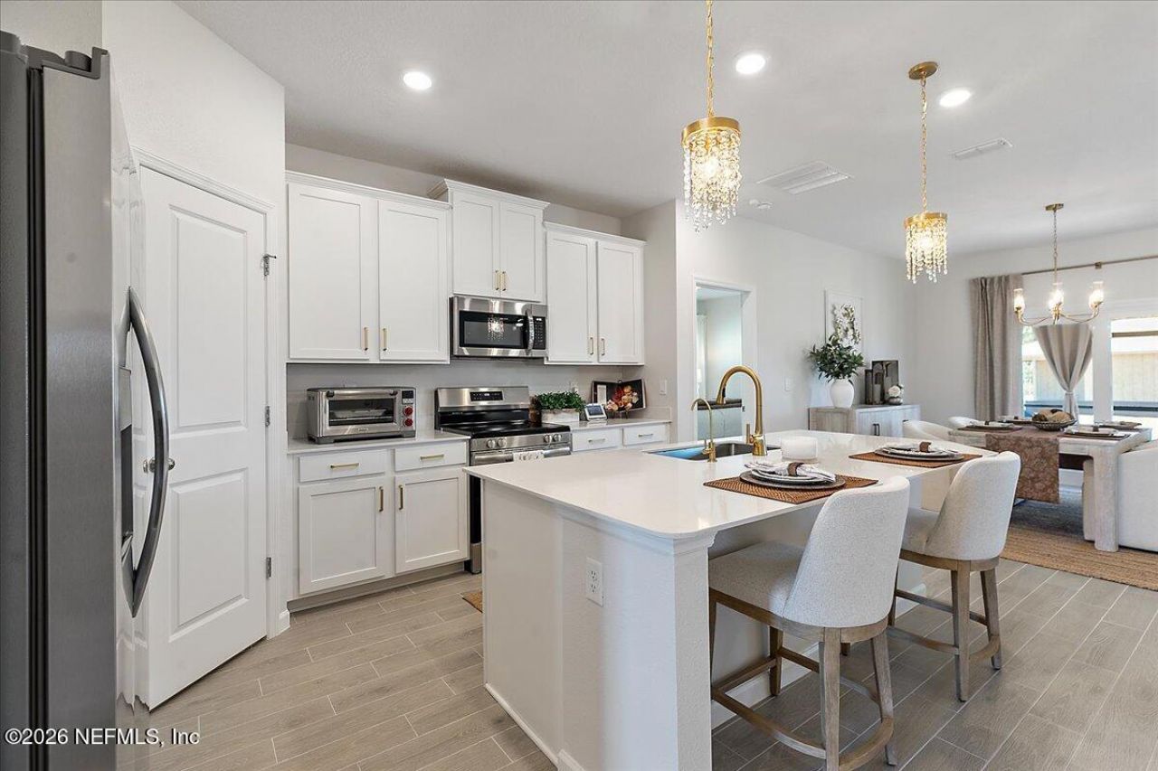 Resort style living & ready now. Built in 2024, this beautifully upgraded home features a private home office plus has 2 beds / 2 baths / 2 car garage . Conveniently located in the gated 55+ community of Edenbrooke at Hyland Trail where connection, convenience, & active living take center stage. Luxury glass door insert provides a light-filled front entry & opens to a wood-look tiled foyer seamlessly welcoming you into the heart of the home. The open-concept design is ideal for both everyday living & entertaining, anchored by a chef-inspired kitchen featuring a large central island perfect for gathering, stainless steel appliances, quartz counters, two large pantries, upgraded faucets, stylish cabinet hardware, enhanced lighting, & a water softener & filtration system. Abundant cabinetry & pantry storage ensure everything has its place. Dining area flows effortlessly thru upgraded sliding glass doors to a screened & covered patio - your private spot to enjoy a cool drink & relax... ... with a fresh Florida breeze. Natural light fills the spacious living room & private home office, creating a bright & inviting atmosphere throughout. The generously sized primary suite offers a peaceful retreat w/ an en-suite bathroom, featuring a sleek frameless glass shower enclosure & oversized walk-in closet. Split floorplan thoughtfully provides privacy for guests. The second bedroom & adjoining full bath also feature a walk-in shower with a frameless glass enclosure. The finished two-car garage has upgraded epoxy flooring, adding both style and functionality. Set on an almost-1/4-acre corner lot, this home offers added privacy with no direct neighbor on one side & a larger yard to enjoy. The community center & mailboxes are conveniently located just across the street, while the vibrant clubhouse lifestyle includes a heated pool, pickleball & bocce courts, fitness center, gathering spaces, fire-pit patio conversation ring, & planned activities led by a lifestyle coordinator. Plus, the location is great - there is easy access to the First Coast Expressway headed to Green Cove Springs, onward to St. Augustine, & the beaches within reach. NAS JAX, Jacksonville, Orange Park - all within a few minutes drive. Move-in ready, thoughtfully upgraded and designed for easy living.