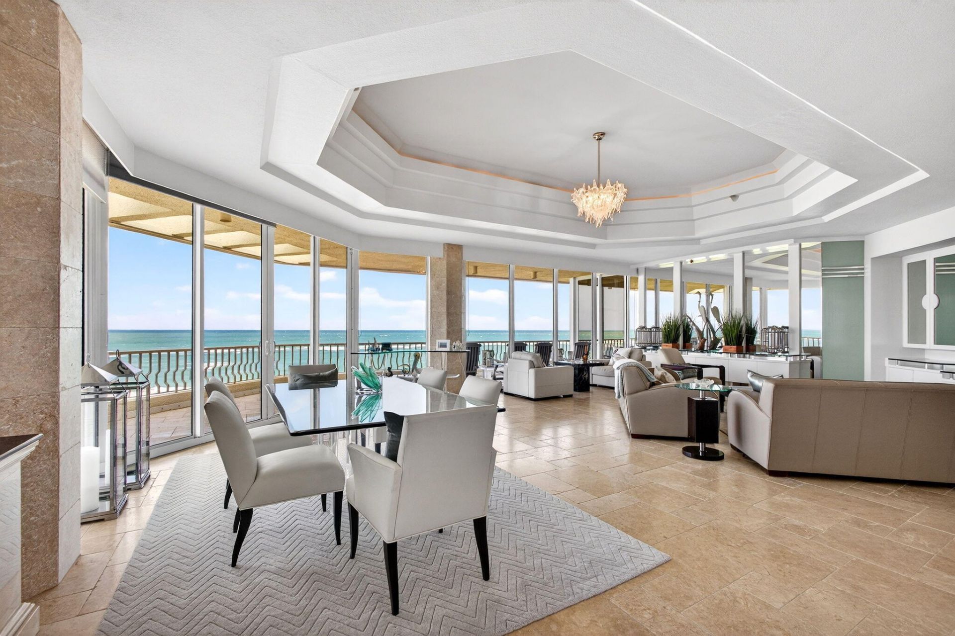Experience elevated coastal living in this three bedroom, three and a half bathroom Sailfish Point PENTHOUSE with unobstructed Atlantic Ocean views. Arrive via elevator access shared by just two residences per floor, into a light-filled interior with volume ceilings, skylights, and open-concept living. Expansive impact glass windows create seamless indoor-outdoor flow, ideal for entertaining or quiet mornings by the sea. The layout includes a bedroom suited as a secondary owner's suite and a third bedroom with private balcony for sunset views. Architectural details such as travertine floors, etched glass, trim, and molding add character and timeless appeal. Two under-building parking spaces and air-conditioned storage included. Residents enjoy exclusive access to world-class amenities... including a Nicklaus 'Signature' golf course, beachfront clubhouse, multiple dining venues, full-service marina with ocean access, fitness and aquatics complex, spa, tennis, pickleball, and 24/7 security