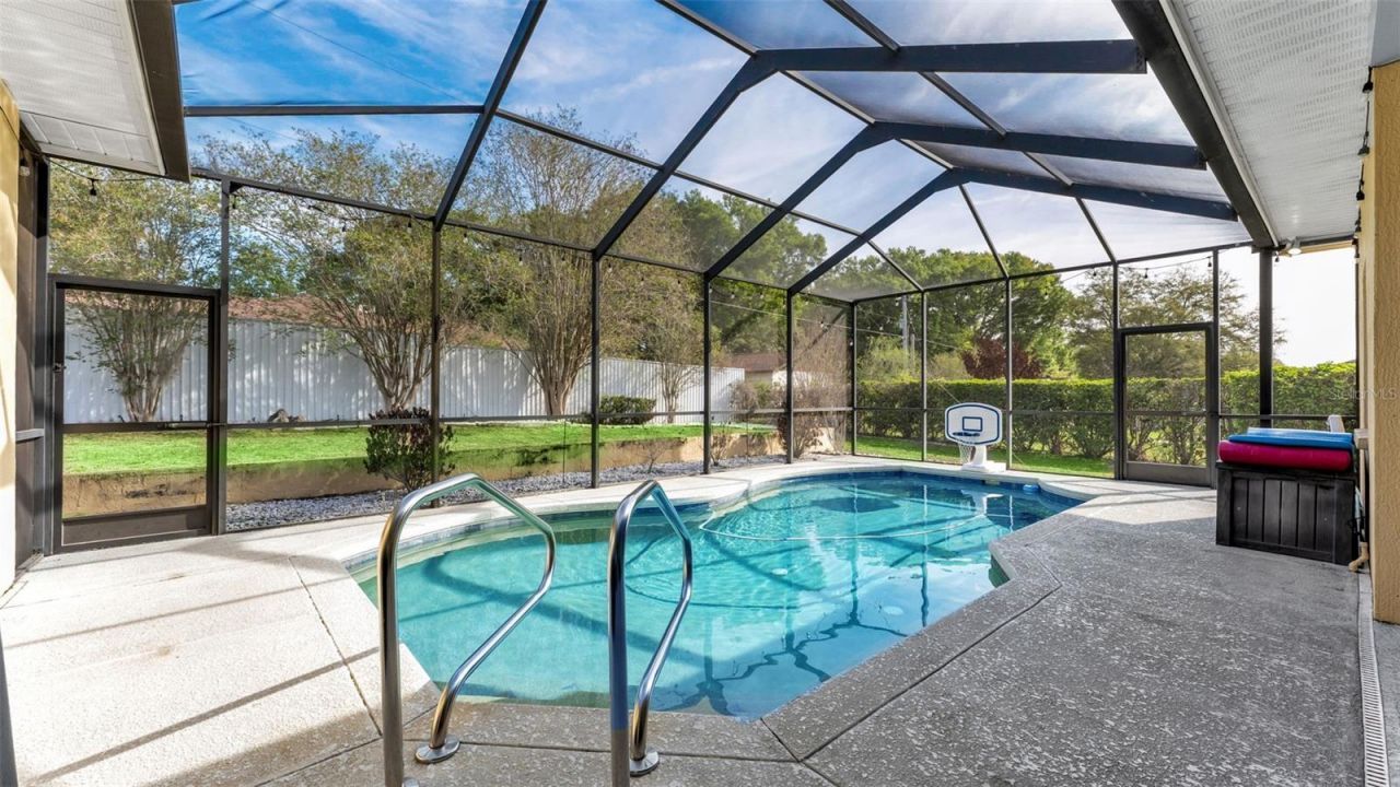 Located on a spacious 0.36-acre corner lot with a fully fenced yard, this move-in-ready POOL home offers an ideal living experience. The split floor plan features high ceilings and both formal and informal dining and living spaces, all with easy access to the pool. Large windows fill the home with natural light, while updated fixtures and attractive paint colors add to its style. The kitchen has been beautifully renovated with leathered granite countertops, white cabinets, stainless steel appliances, and a tile backsplash. You will enjoy the openness of the kitchen area, with a breakfast bar that opens into the family room and dinette, plus a kitchen sink overlooking the pool and a handy pass-through window. The primary suite includes a spacious bedroom, en-suite bath, and a flexible bonus space with French doors-great for a home office, nursery, gym, or sitting room. The en-suite bathroom provides a soaking tub, separate shower, dual vanities, and a private water closet. There are dual walk-in closets in the primary bedroom and large walk-in closets in the guest bedrooms, providing ample storage throughout the home. You can access the pool from the primary suite, formal dining, informal dining, or the guest 'pool bath. The heated, 'sports-style pool is screened for year-round enjoyment and offers plenty of seating. Additional features include a roomy indoor laundry area leading to a two-car garage with space for a workshop or overflow storage. This home also includes a water softener system (2025), as well as a newer air conditioner and water heater (2024). Located in a community with a low HOA fee, plus excellent nearby schools and convenient amenities, this home truly has it all. *LOCATED IN A USDA ELIGIBLE AREA*