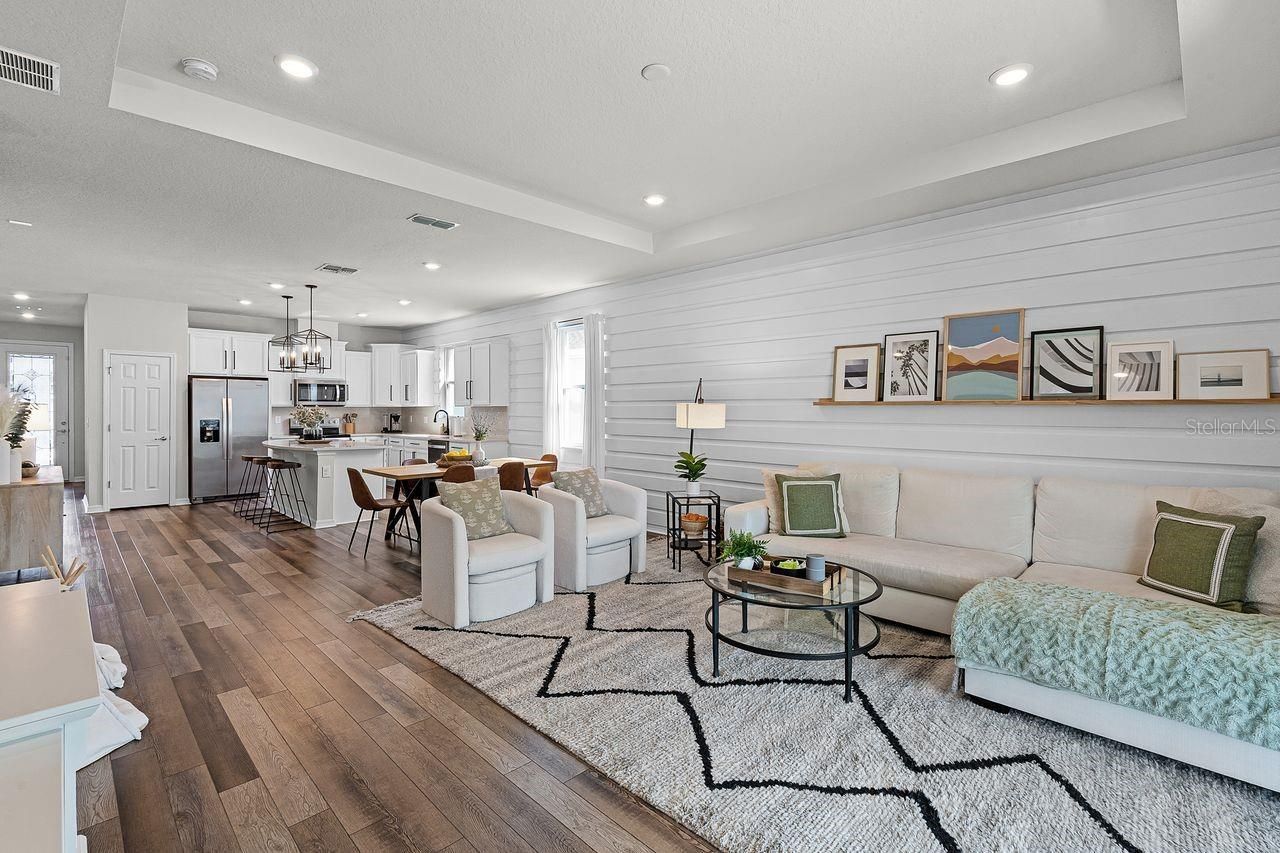 LOWEST PRICED HOME IN THE NEIGHBORHOOD! UPGRADES GALORE IN THIS SINGLE-STORY HOME! Three large bedrooms plus a flex room! This open floorplan Lakeview Preserve home is loaded with modern, upgraded features, such as LUXURY VINYL flooring throughout the living space. At the front of the home, there is a large FLEX ROOM that is perfect for an office, study, or game room. Moving down the entry hallway, the home opens onto the spacious kitchen, with clean white cabinetry, slick quartz countertops, and HUGE ISLAND for prepping and entertaining. The living space is accented by a sophisticated SHIPLAP WALL, tray ceiling, and large sliding glass door with views to the tranquil outdoor space. This split floorplan positions the large primary suite off the living space at the rear of the home for added privacy. It features a large WALK-IN CLOSET and primary bathroom with dual sink vanity and glass WALK-IN SHOWER. The two guest bedrooms are in their own wing at the front of the house, sharing their own guest bathroom. Stepping outside, you are greeted with a large covered and screened patio that features a rear ROLL-UP SCREEN, allowing for ultimate indoor/outdoor living. The gated Lakeview Preserve community features a RESORT-STYLE COMMUNITY POOL, children's splash pad, outdoor cabana, stylish clubhouse with fitness center, and playground - PLUS a waterfront community dock and kayak launch on Johns Lake. The location is prime, with easy access to SR-429, US-27 and FL Turnpike making commuting a breeze. Also enjoy a quick drive to local shopping, dining, and entertainment destinations like Downtown Winter Garden, Winter Garden Village shopping center, Downtown Clermont, Walt Disney World, Universal Orlando, and more. This home is your next Florida oasis, schedule your private showing today!