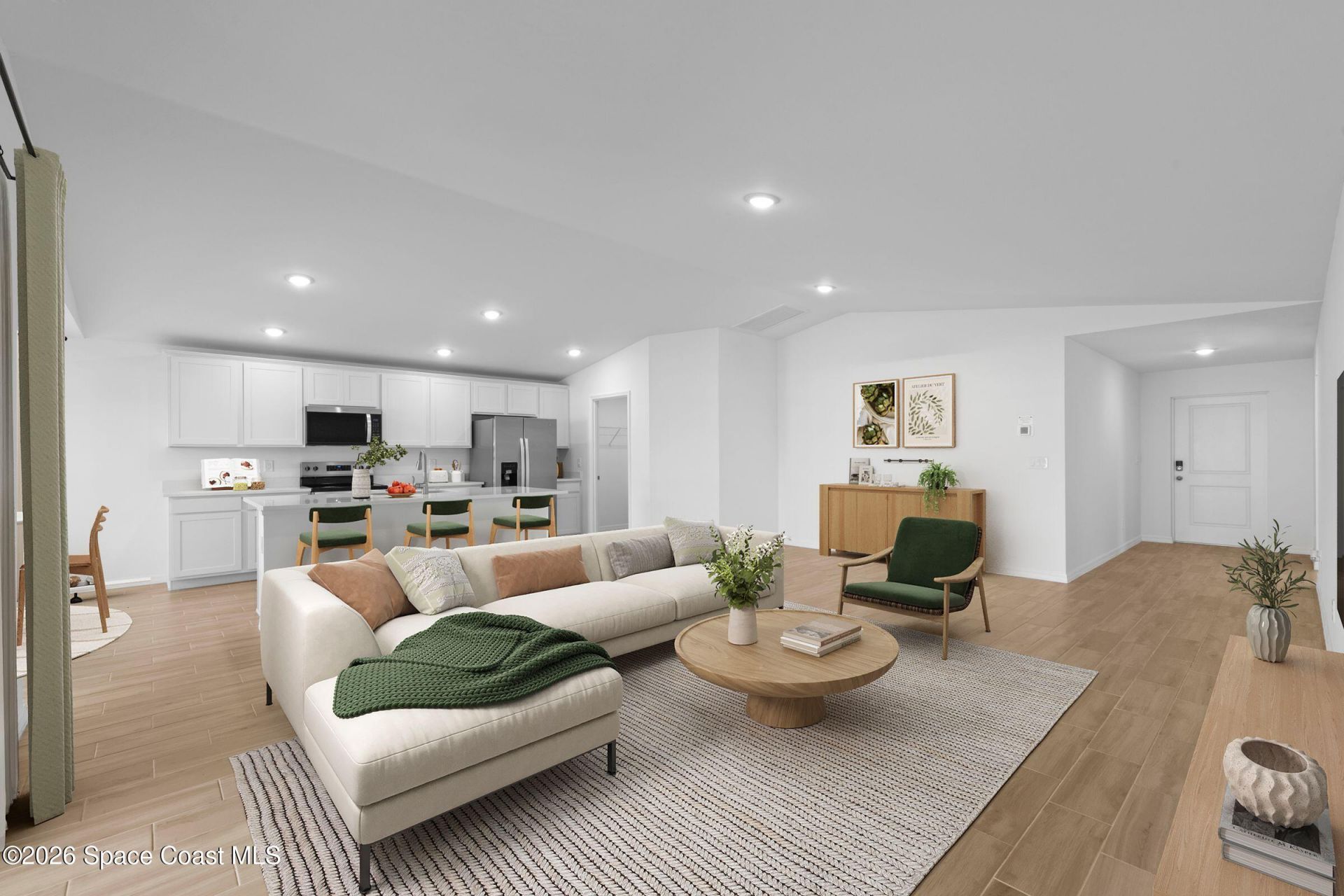 NEW CONSTRUCTION WITH WARRANTY! *Estimated delivery June 2026.* The Palm offers 1,550 square feet of thoughtfully designed living space. The spacious Great Room with its vaulted ceiling flows effortlessly to the private covered lanai--ideal for indoor-outdoor living and entertaining. At the heart of this open layout, the kitchen features a freestanding island, walk-in pantry, and designer cabinetry, opening to a bright dining area with a tray ceiling and abundant natural light. The primary suite includes a generous walk-in closet and a private bath with dual vanities, a tiled shower, and convenient linen storage. Additional highlights include upgraded plank tile throughout the main living areas, designer cabinetry & quartz counters in the kitchen and baths, hurricane-impact windows and doors, stainless steel kitchen appliances, and an attached two-car garage. Pictures, renderings, & virtual tour are of similar home & are used for display purposes only.