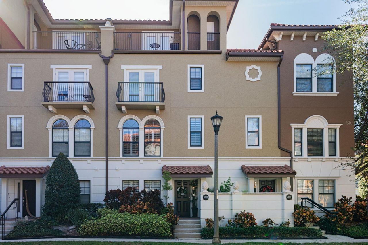 Elevated living meets effortless convenience in the 24-hour guard-gated community of Fountain Parke at Lake Mary. This spacious four-story Mediterranean-style townhome offers an exceptional blend of elegance, versatility, and low-maintenance living-complete with a private elevator servicing every level, a rare and highly sought-after feature.A charming stucco exterior, terracotta tile roof, and inviting front patio framed by mature landscaping set the tone for what awaits inside. Recent updates include fresh interior paint, newer engineered hardwood flooring, and plantation shutters throughout, creating a light, polished atmosphere.The entry level welcomes you with a bright foyer and a private guest suite featuring a full bath with walk-in shower, ideal for visitors, extended family, or multigenerational living. This level also provides access to the two-car garage with custom built-in storage and an installed EV charger-a modern convenience today's buyers appreciate.The second floor is designed for entertaining, with open living and dining spaces accented by tall arched windows that flood the home with natural light. The well-appointed kitchen features granite countertops, 42 cabinetry, and newer stainless steel Samsung appliances. Step outside to a private balcony with exterior storage, perfect for morning coffee or evening relaxation.On the third level, you'll find an additional bedroom with generous closet space and tranquil views, along with the primary suite retreat. The primary bathroom offers dual vanities, a walk-in shower, soaking tub, and two custom closets, providing both comfort and functionality.The fourth floor delivers exceptional flex space-ideal as a media room, game room, home office, or additional bedroom-leading to a second balcony and expansive rooftop terrace. Designed for unforgettable gatherings, this outdoor retreat features a full summer kitchen, wet bar, and built-in grill-an entertainer's dream rarely found in townhome living.Additional highlights include a new HVAC system, ensuring year-round comfort. Fountain Parke residents enjoy resort-style amenities including a pool and spa, tennis and pickleball courts, putting green, dog park, clubhouse, and fitness center. Ideally located near major roadways, shopping, dining, golf courses, and popular attractions, this home truly delivers on location, lifestyle, and luxury.Schedule your private tour today and experience this exceptional home!24-hour notice required. Video and/or audio surveillance with recording capability may be in use on these premises.