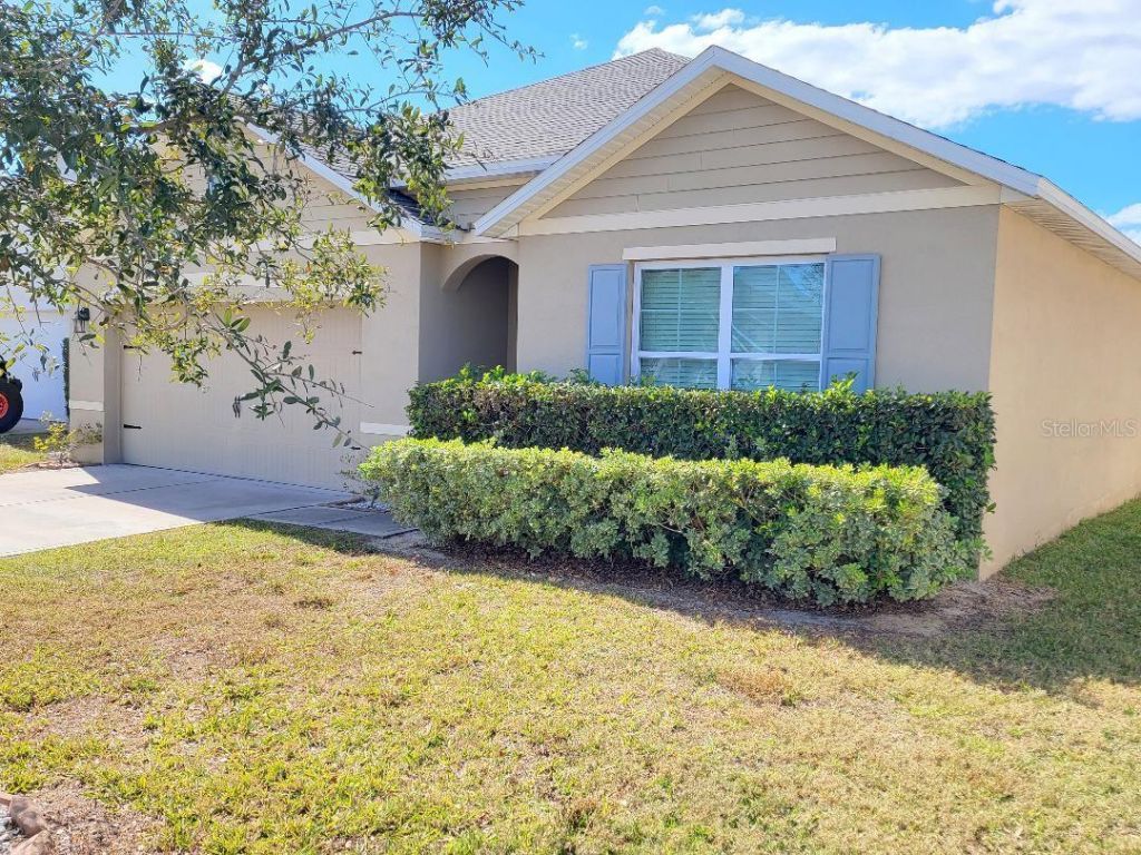 Gorgeous 4 bedroom, 2 bathroom, 2 car garage home located in Buckeye Ridge subdivision. Home has been well-maintained with NEW Roof 2025, Solar panels, and Tile floors. This is an open floor plan home that boasts a large room that features the kitchen, living room and dining room. Kitchen area is perfect for entertaining Family and Friends. The primary suite is a true retreat, featuring a private en-suite with dual sinks, walk-in shower, an expansive 7x8 walk-in closet, private commode, and an extra linen closet. This split plan home also features 3 more bedrooms, another full bathroom and an indoor laundry room. The sliding doors to the backyard lead you to a covered porch overlooking a fenced backyard with large pond view. Buckeye Ridge Community is perfectly situated with easy access to downtown, shopping, dining, medical facilities, and not too far from HWY 27, providing effortless travel to both Tampa and Orlando.
