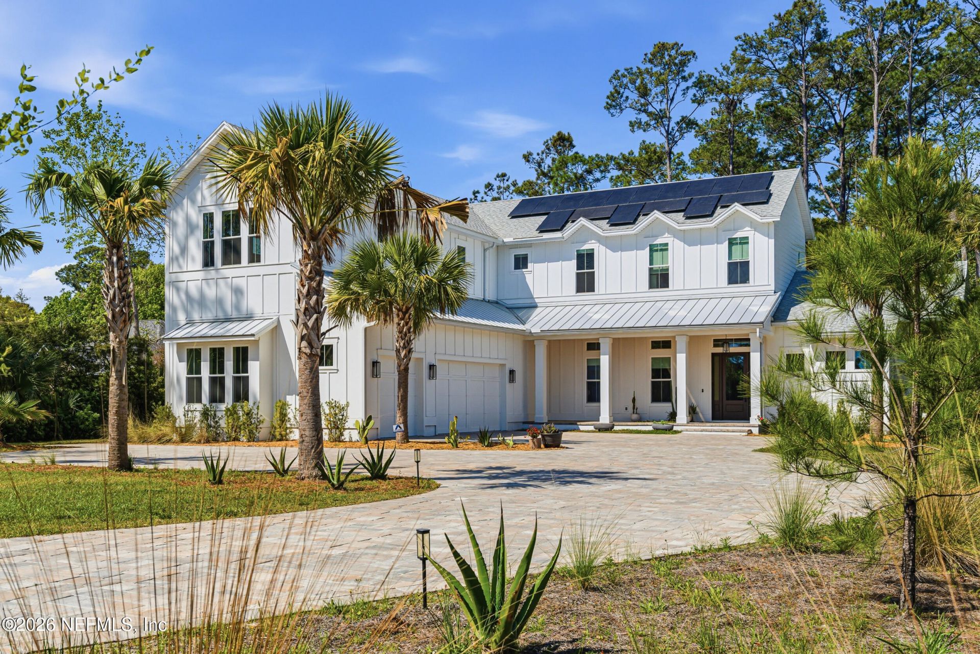Set on 1.2 private acres, the Floresta -- a signature model by Fox Signature Homes -- offers a seamless blend of design, comfort, and functionality in the heart of Ponte Vedra Beach.This custom-built residence features an open, thoughtfully designed layout with soaring ceilings and a central fireplace that anchors the main living space. The European-style kitchen is equipped with SieMatic cabinetry, Gaggenau appliances, and a built-in espresso machine, all flowing effortlessly into the main living and entertaining areas.Outdoor living is equally impressive, with a fully screened resort-style pool (up to 6 ft deep), spa-style hot tub, outdoor fireplace, and a summer kitchen--perfect for entertaining or relaxing year-round.Designed for efficiency and long-term performance, the home includes solar power supported by four Franklin batteries, dual HVAC systems, two tankless water heaters, foam-insulated roofing, and a whole-home water softener. Irrigation is supplied by a private ... well, contributing to lower operating costs.Additional features include an extended three-car garage, a dedicated powder room, and a private preserve backdrop that enhances both privacy and setting.
