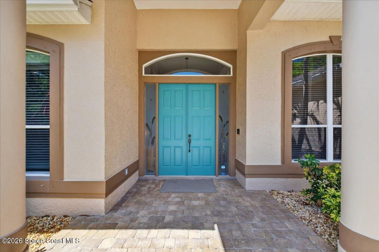 Seeking the perfect Florida coastal lifestyle on the Space Coast? Welcome to this inviting 4 bedroom, 3 bath waterfront pool home, overlooking a championship 18-hole golf course! Step through your front door into a light-filled living space where soaring ceilings and a thoughtfully designed split floor plan create an immediate sense of openness and ease-all beautifully framed by endless water views! Step outside and relax on your large screened patio, complete with heated pool and spa - your private oasis. The spacious primary suite offers a serene retreat, with a sitting area, and spa-inspired bath, featuring a jetted tub, dual vanities, separate shower and walk-in-closets. At the heart of the home, the kitchen...a chefs dream! An Electrolux Gas Range and Samsung Refrigerator boast dual ice makers-perfect for entertaining! Theres a dedicated laundry center and oversized 2-car garage. Years of enjoyment await in this premier Baytree community with nearby dining, shopping & the beach!