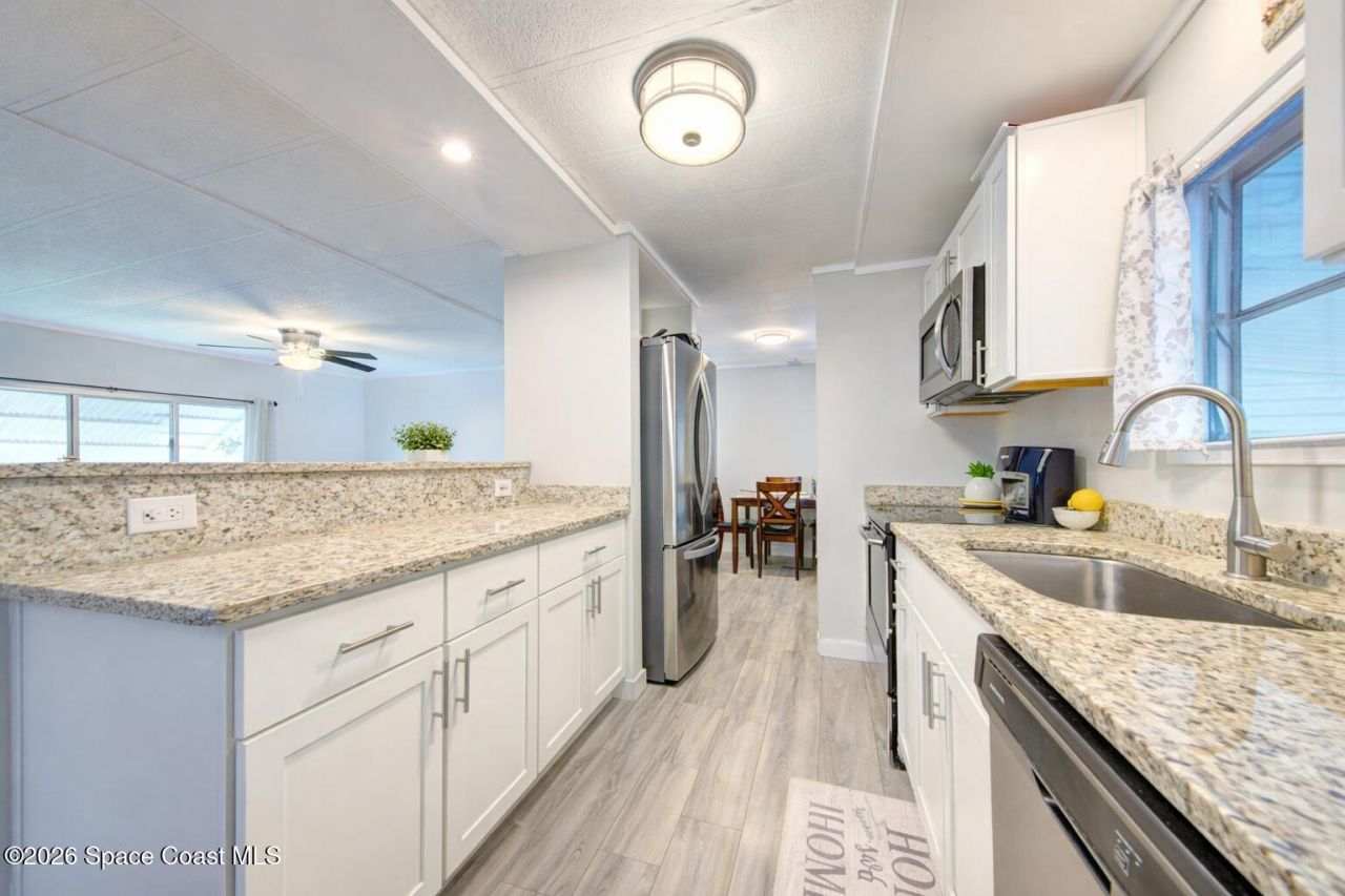 Welcome to this charming home located in a desirable 55+ community known for its friendly atmosphere and excellent amenities, including a community pool, clubhouse, and a variety of social activities. This nicely updated double-wide manufactured home features a newer kitchen with stainless steel appliances, updated flooring throughout, and renovated bathrooms. The open-concept layout seamlessly connects the kitchen to the living room, dining area, and family room, which leads out to a screened porch, perfect for relaxing or entertaining. The primary bedroom is generously sized and easily accommodates a king-size bed, while the guest bedroom also offers comfortable space for visitors. Additional features include a carport, storage area, and a dedicated laundry room. Best of all, you own the land, no lot rent! The HOA is just $126.40 per month, with a small voluntary fee of $25 annually. Come experience this vibrant community where sunshine, friendships, and an active lifestyle await!