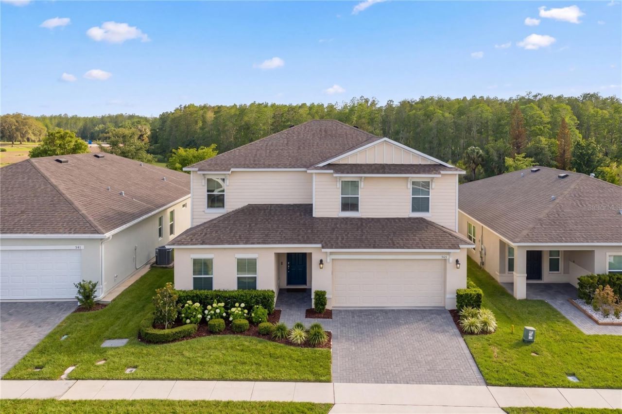 Welcome to your dream home! This beautiful 5-bedroom, 3.5 bathroom, two-story single-family residence offers 2,938 square feetof living space The home is located in the highly sought-after Laurel Hill Estates neighborhood, just 15 minutes from the magic of Walt Disney World, and the renowned Omni Orlando Resort at Champions Gate, shopping, and restaurants. As you enter, you'll be greeted by an inviting open floor plan that seamlessly connects the living areas. , making it an ideal space for family gatherings and entertaining. This home offers one bedroom downstairs with an en-suite bathroom, which can easily serve as a guest room or home office, and a Half Bathroom for your convenience. The spacious and well-appointed Kitchen is a chef's dream, featuring stainless steel appliances, beautiful real wood cabinets, and ample granite countertop space. It also features a large island with a built-in sink and convenient Breakfast Bar seating. Upstairs NO CARPET recently (2023) installed Vynil plank waterproof floor ,you'll find the spacious loft area, perfect for relaxation or play. The large backyard it has a beautiful view, no rear neighbors, conservation view, ideal for outdoor entertaining! Additional features include tall cabinets for ample storage, a large Pantry. WASHER AND DRYER (2023), Screened extended Lanai to enjoy with family and friends.Zoned for short-term rentals, it presents a prime investment opportunity, allowing for impressive rental income potential. As part of this vibrant community, you'll have access to a sparkling community pool and playgrounds, perfect for family fun. Located in an ideal location, enjoy easy access to major highways, world-class restaurants, championship golf, shopping destinations, and the renowned Omni Orlando Resort at ChampionsGate. With low HOA fees, NO CDD, and the flexibility to allow AIRBNB, this home is a rare and exceptional find. Don't miss the chance to own this extraordinary, move-in-ready. FRESHLY PAINTED INTERIOR. Schedule your private showing now!!!