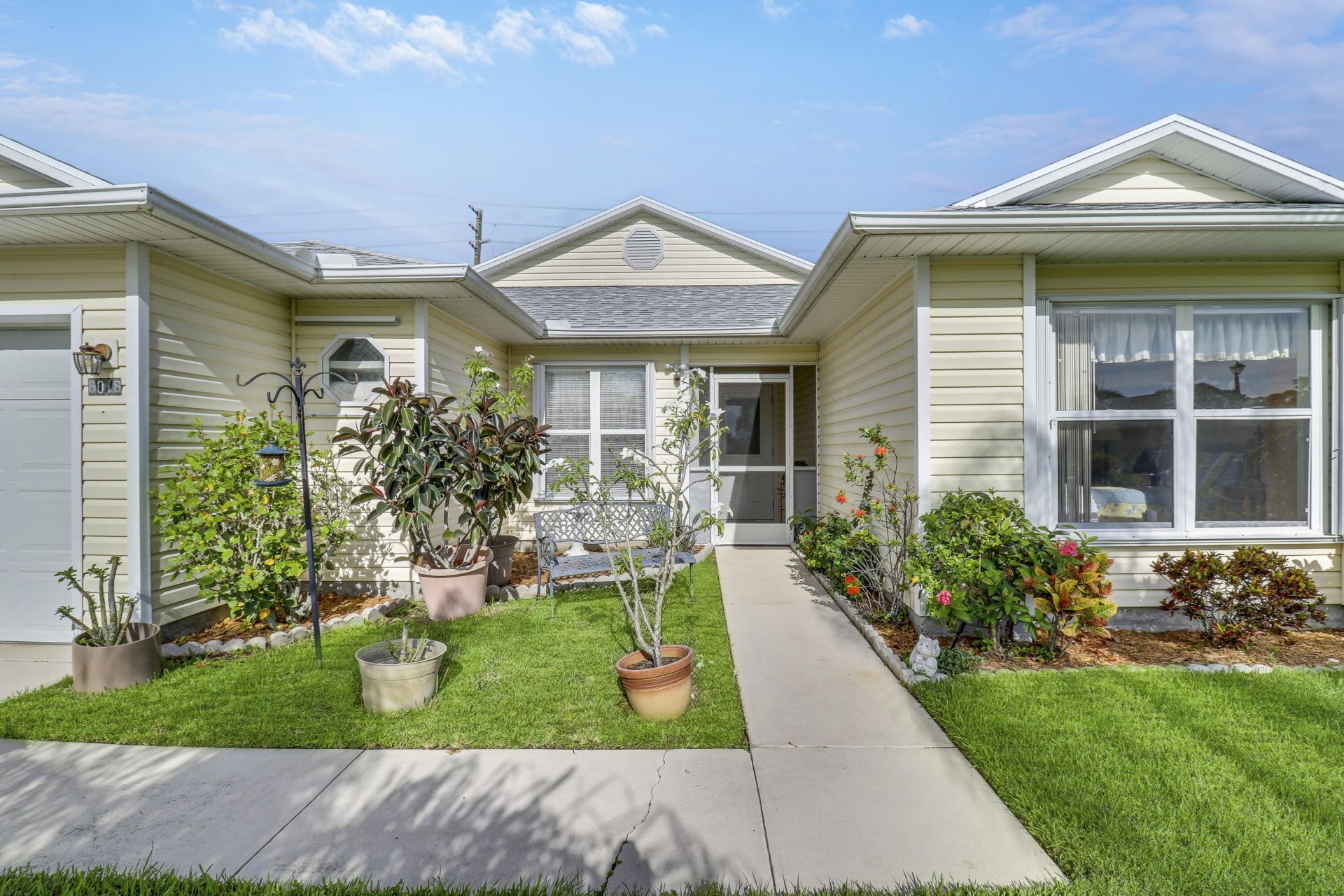 Welcome to this charming, well maintained 2-bedroom, 2-bath home with a 1 car garage located in the active 55+ man-gated community of Palm Grove. This home features a spacious kitchen with resurfaced cabinets, breakfast bar, and eat-in area, along with a large formal dining room ideal for entertaining. The primary suite offers his/her closets and a private bath with garden tub and separate shower. The home backs up to a small canal providing added privacy and includes a screened in patio perfect for relaxing or enjoying your morning coffee. Palm Grove offers a low HOA and amenities including clubhouse, pool, pickleball, tennis courts, and more. Just minutes from the hospital, dining, shopping, beaches, fishing, and downtown Fort Pierce.