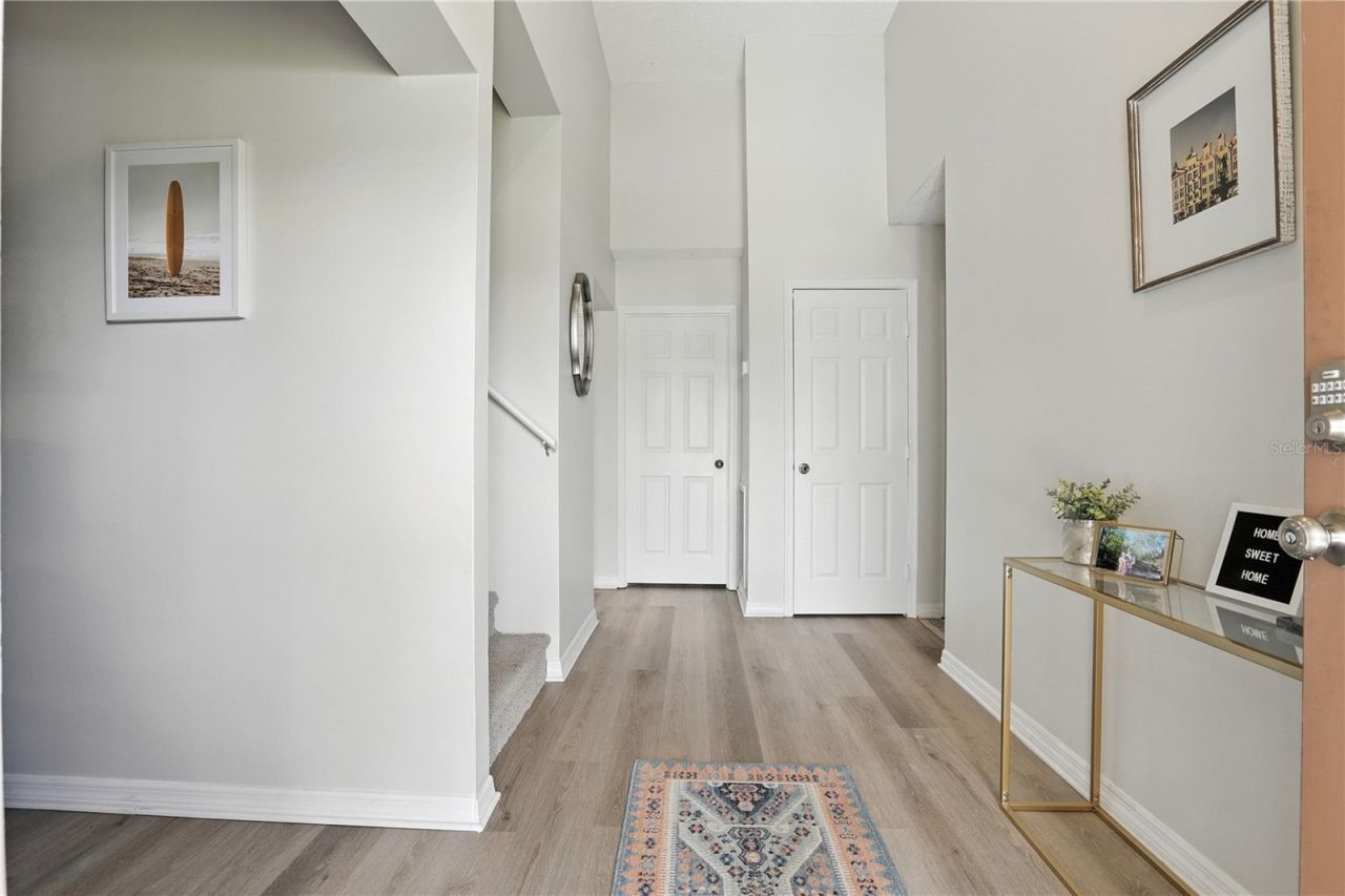 Welcome Home to this beautifully updated 3-Bedroom Gem in Poinciana Villages! Don't miss this incredible opportunity to own a fully MOVE-IN READY home tucked away in a peaceful cul-de-sac in the heart of Poinciana. This charming two-story, 3-bedroom, 2-bath single-family home has been thoughtfully updated from top to bottom. As you arrive, you'll appreciate the fresh exterior paint, NEW roof (2024) and brand-NEW HVAC system (2025). Step inside to a light and airy open floor plan featuring gorgeous new luxury vinyl flooring throughout the first floor and brand-new carpet in all bedrooms. Freshly painted interior walls give the home a clean, modern feel throughout. The spacious living room features soaring ceilings 17 feet tall, filling the space with natural light and offering relaxing views of the expansive 1/4+ acre backyard, framed by mature trees-perfect for gatherings or peaceful evenings outdoors. Upstairs, enjoy your own retreat in the generously sized primary suite complete with a walk-in closet and private en-suite bathroom. Two additional bedrooms are located downstairs, offering flexibility and privacy for family or guests. The guest bathroom has been updated with white shaker-style cabinets, luxury vinyl flooring, a shower/tub combo and a quartz single sink vanity with extra counter space. The kitchen has been fully upgraded with brand-new shaker-style cabinets, quartz countertops, and stainless steel appliances including a range, microwave, dishwasher, and NEW refrigerator-perfect for cooking and entertaining! Additional highlights include an indoor laundry room, a fully repainted garage, and a NEW water heater (2024) for added comfort and efficiency. Enjoy the Florida lifestyle with access to resort-style community amenities through the Poinciana Villages Association, including a fitness center, multiple swimming pools, playgrounds, trails, dog parks, and more! Plus, the low HOA fee includes internet and cable! Welcome Home!