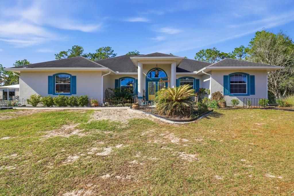 Edit mortgage details for a more accurate paymentExperience elevated country living with this exceptional 5.12 acre estate in the coveted equestrian community of Fox Grove Farms.Offering 2478 sq ft of refined living space and an impressive 3356 sq ft under roof, this 4 bedroom, 3 full bath residence delivers privacy, scale, and versatility rarely found in today's market. The home features spacious light filled interiors with soaring ceilings throughout, designed for both everyday comfort and elegant entertaining. With generous living areas and a flexible floor plan, the residence easily accommodates family, guests, home office, or multi generational living. There are two sensational primary suites with full en-suite baths, both with private access from the back screened in porch. Featuring a private split floor plan all with generously sized rooms with a full bath for guests. The eat in kitchen is a culinary delight for entertaining, with a pantry, generous cabinets and plenty of counter space. The whole home has multiple storage closets throughout and 2 water heaters. As if that wasn't enough... there is a 2300 sq ft palatial workshop and studio, ideal for craftsmen, woodworkers, entrepreneurs, or anyone seeking substantial climate ready well insulated workspace, storage, or private studio. This level of infrastructure significantly elevates the lifestyle and value of the estate. Neighborhood pottery painting parties were well loved here! Now the extras...5.12 acres perimeter fenced with a circular drive, automatic gate, 3 paddocks, hay shed/run in and 2 stall run in, both with water & electric and fans, washrack, carport & tack room with water & electric, RV pad with 50 AMP circuit. All gardens are irrigated with timers. Riding trails within the neighborhood and a short ride to Goethe State Forest Trail Systems. Close to Black Prong Equestrian Village, WEC, and fishing and fun in the Gulf. From sunrise to sunset, enjoy moments on the front patio accompanied by the tranquil waterfall fountain perched a top this expansive equine hobby farm. Where everyday feels elevated!