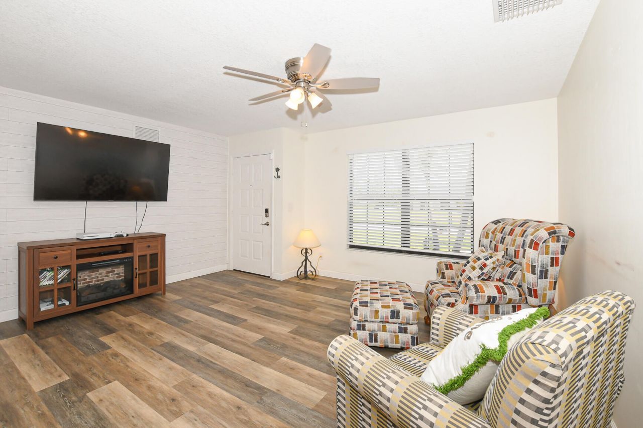 Spacious 2-bedroom, 2-bath pool home with a great layout. The kitchen features an island, cooktop, wall oven, and built-in microwave, offering a solid foundation for everyday living and entertaining. The home includes an air-conditioned Florida room with sliding glass doors leading to a private pool and patio area, providing a versatile space that could be reimagined as a third bedroom, office, or additional living area. Adjacent to the Florida room is a convenient kitchenette area with a refrigerator, sink, and ample cabinetry-perfect for entertaining or creating a separate guest or in-law space. 2022 metal roof.