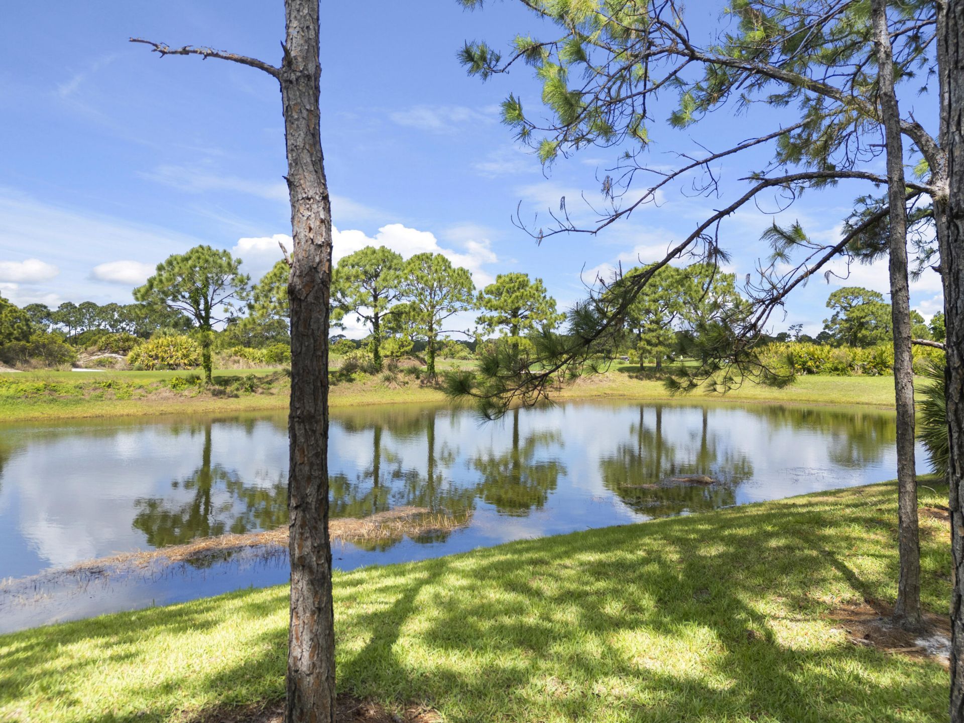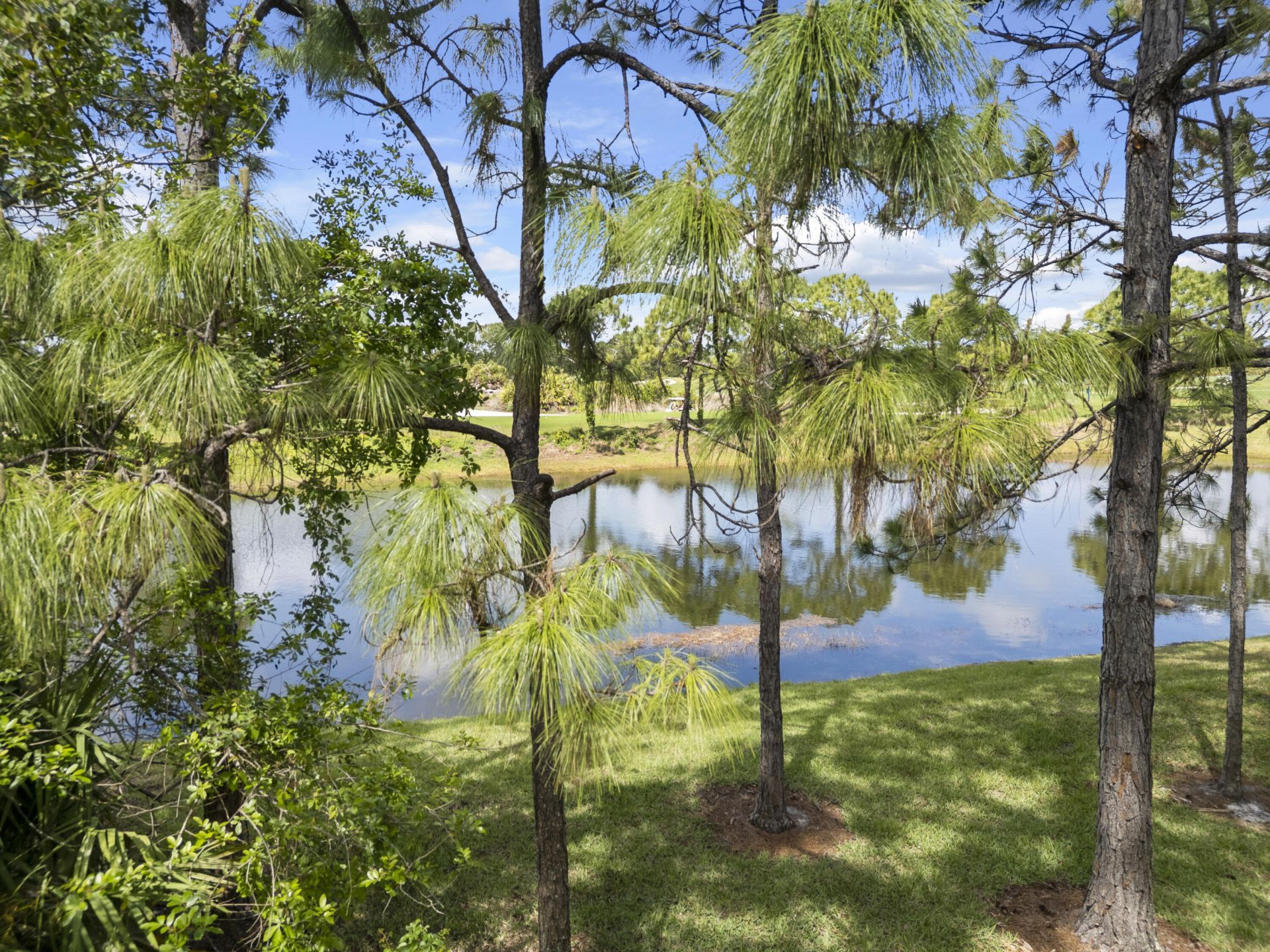 WHAT A VIEW! This meticulously maintained 2BR/2.5BA condo offered fully furnished/turnkey in Castle Pines boasts serene lake and golf views with a treehouse feel! Perfect as a seasonal residence, full time home or for an investor wanting to have rental income! Some of the many special features include county only taxes, granite counters throughout, upgraded stainless steel appliances in the kitchen, tray ceilings and tile through the main living areas. Kitchen with breakfast bar for extra seating is open to the living area. The main bedroom is spacious, includes an ensuite and walk-in closet. Convenient half bath off of the hall is great for entertaining. The lock-off door between the main side of the condo and the studio side includes kitchenette, full bathroom plus private entrance door -providing the opportunity to use one side of the condo, while renting the other, rent both sides or use the whole condo for yourself. There is a private washer/dryer too! Screened and covered patio is the perfect place to sit and enjoy the view. Condo association will soon be replacing all roofs with standing-seam metal roofs and repainting the buildings, for a fresh Florida feel! HOA dues include cable, internet, water, sewer, building insurance, roof, lawn care, landscaping, resort style pool and access to the Island Club. PGA Village is an amenity rich community with COUNTY ONLY TAXES surrounded by multiple golf courses where membership is optional. Enjoy NY Mets spring training game, golf courses, beaches, shopping, dining and neighboring coastal towns. Call today to view!
