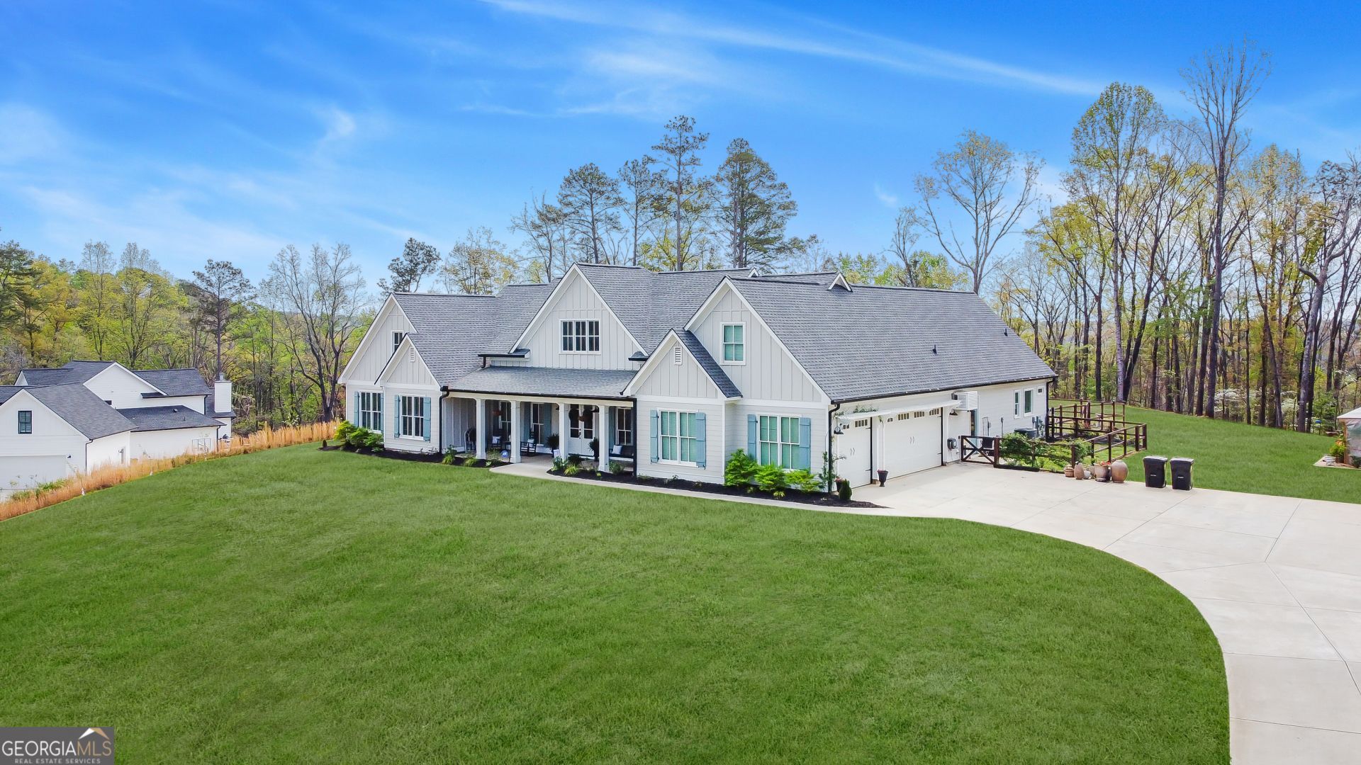 Luxury Private Modern Farmhouse Estate on Nearly 5 Acres Pool, Homestead, No HOA! Experience the perfect blend of luxury, privacy, and lifestyle in this exceptional estate nestled on nearly five acres-with no HOA restrictions. Designed for both elevated living and everyday comfort, this property offers space to entertain, unwind, and live freely. The thoughtfully designed floor plan features 6 bedrooms, 4 full baths, and 2 half baths, including a convenient dedicated pool bath. Interior highlights include custom cabinetry, quartz countertops throughout, full tile showers, exposed beam ceilings, walk-in pantry, separate office, new Kitchen Aid appliances, and a stunning brick gas fireplace. Step outside to your resort-style heated saltwater pool and spa, complemented by a covered back porch stubbed for propane-perfect for a future outdoor kitchen and year-round entertaining. Expansive windows frame breathtaking views of your private oasis, bringing the outdoors in. For those seeking a homesteading lifestyle, the property is fully equipped with a 20-bed raised garden, mature fruit trees, abundant blackberry and blueberry bushes, and a fully enclosed chicken coop-complete with 15 egg-laying hens included. Enjoy true main-level living, plus a private bonus suite above the garage, ideal for guests, in-laws, or teens. Animal lovers will appreciate the separate fenced dog run conveniently located off the laundry room, featuring a built-in dog door for easy indoor-outdoor access. The deep 3-car garage offers incredible versatility-currently outfitted with a gym and golf simulator, while still accommodating a full-size SUV and truck. Additional features include a utility sink, workspace, and garden prep area. Located minutes from top-rated schools, major highways, shopping, and Allatoona Lake, this home offers both seclusion and convenience. A rare opportunity to own a private luxury retreat with endless possibilities.