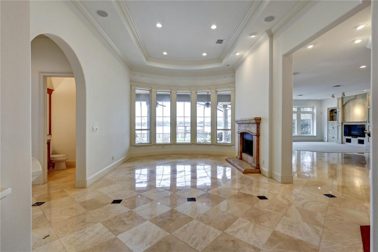 Enjoy amazing sunsets & fireworks over Sand Lake from this exquisite European lakefront estate in guard gated Estates at Phillips Landing. Quality constructed & designed by original owners on job site daily! Over $300K in upgrades not realized in a custom builders spec home. This 4 or 5 bedrm plus office with 5 baths. 10 rooms overlook lake through double paned tinted windows accented w/craftsmanship trim & millwork. Hand carved Brazilian Oak 8ft front doors. Extensive Italian stone & Common American cherry wood flooring. Stone double sided gas fireplace in the living room & nook adds to ambiance. Faux painted ceiling treatments as well as upgraded lighting for artwork display. Gourmet island kitchen w/dramatic solid stone hood. Top of the line appliances include Advantium speed cook oven, convection microwave, cooktop, warming drawer, 48 built-in refrigerator, 2 disposals. Butlers pantry & wet bar w/icemaker. Solid natural cherrywood cabinetry w/granite countertops. Expansive breakfast bar overlooks spacious Family Room w/ quality custom built-ins & whole house stereo system which conveys as is. Sumptuous primary retreat allows for total quietness while sleeping, wake up to views of the lake through picture windows. Lavish primary bath w/garden view jacuzzi spa tub. Solid stone walk in shower. Custom cherrywood cabinetry w/granite, double vanities & bidet. 32x14 porcelain tiled covered lanai, summer kitchen, self cleaning pool & spa. Dock & boathouse leads to 10 miles of shoreline. Enjoy the privacy yet moments away from restaurants, shopping and all the attractions Central Florida has to offer..