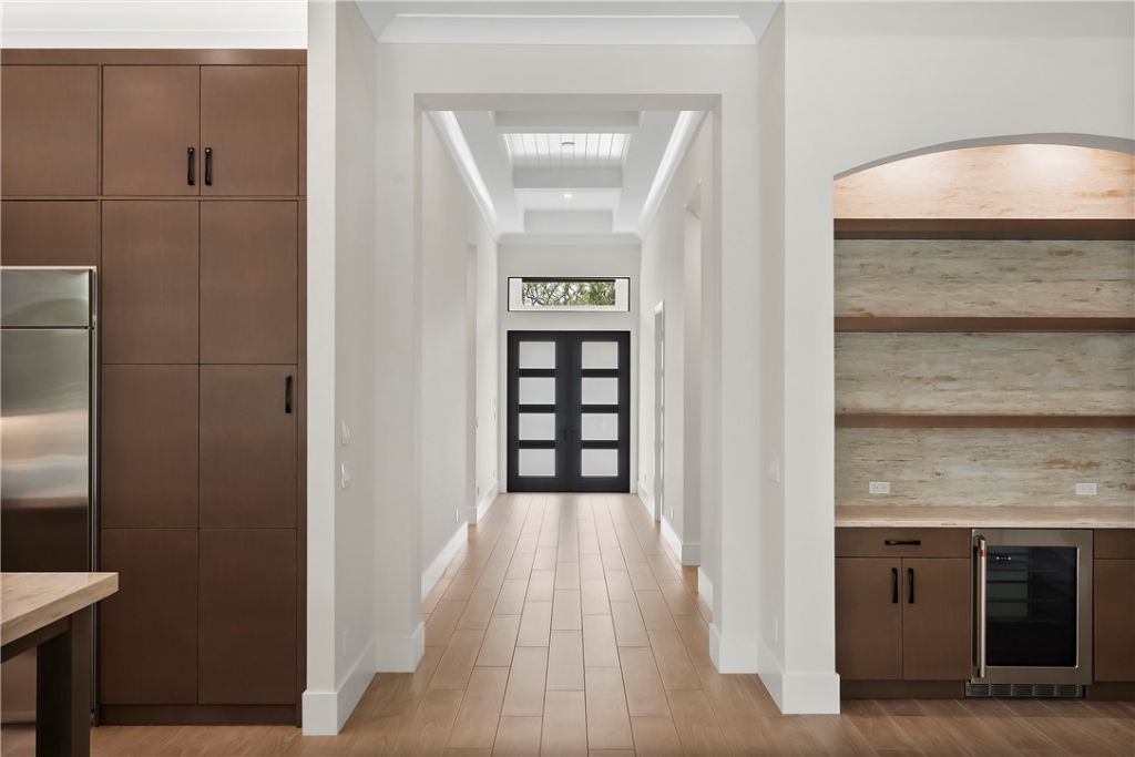 Citron model is currently under construction, available in March 2026. Lakeside, saltwater chlorinated pool, complete with a raised spa that includes a tiled spillway enclosed with panoramic screens. Inside, the home is finished with 8x48 porcelain wood plank tiles, and a gas fireplace surrounded by floor-to-ceiling tiles, along w/ wood-wrapped beams in the great room. The kitchen boasts stacked cabinets, an oversized center island, and Café appliances, including a 42-inch built-in refrigerator. Double vanity, a stand-alone tub, and a spacious walk-in closet.